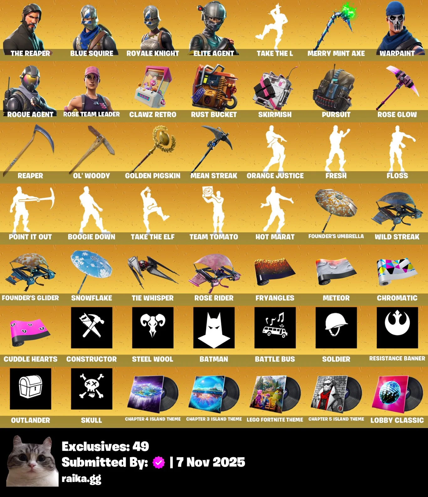 [PC/PSN/XBOX] 116 skins | OG STW | The Reaper | Floss | Merry Mint Axe | Blue Squire | Royale Knight | Elite Agent | Rogue Agent | ORIGIN | STAGE 5 | STAGE 5 | 1350 VB