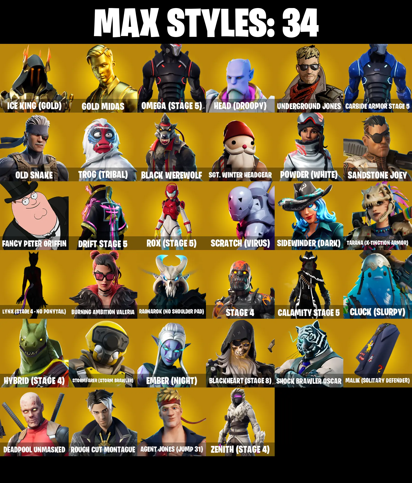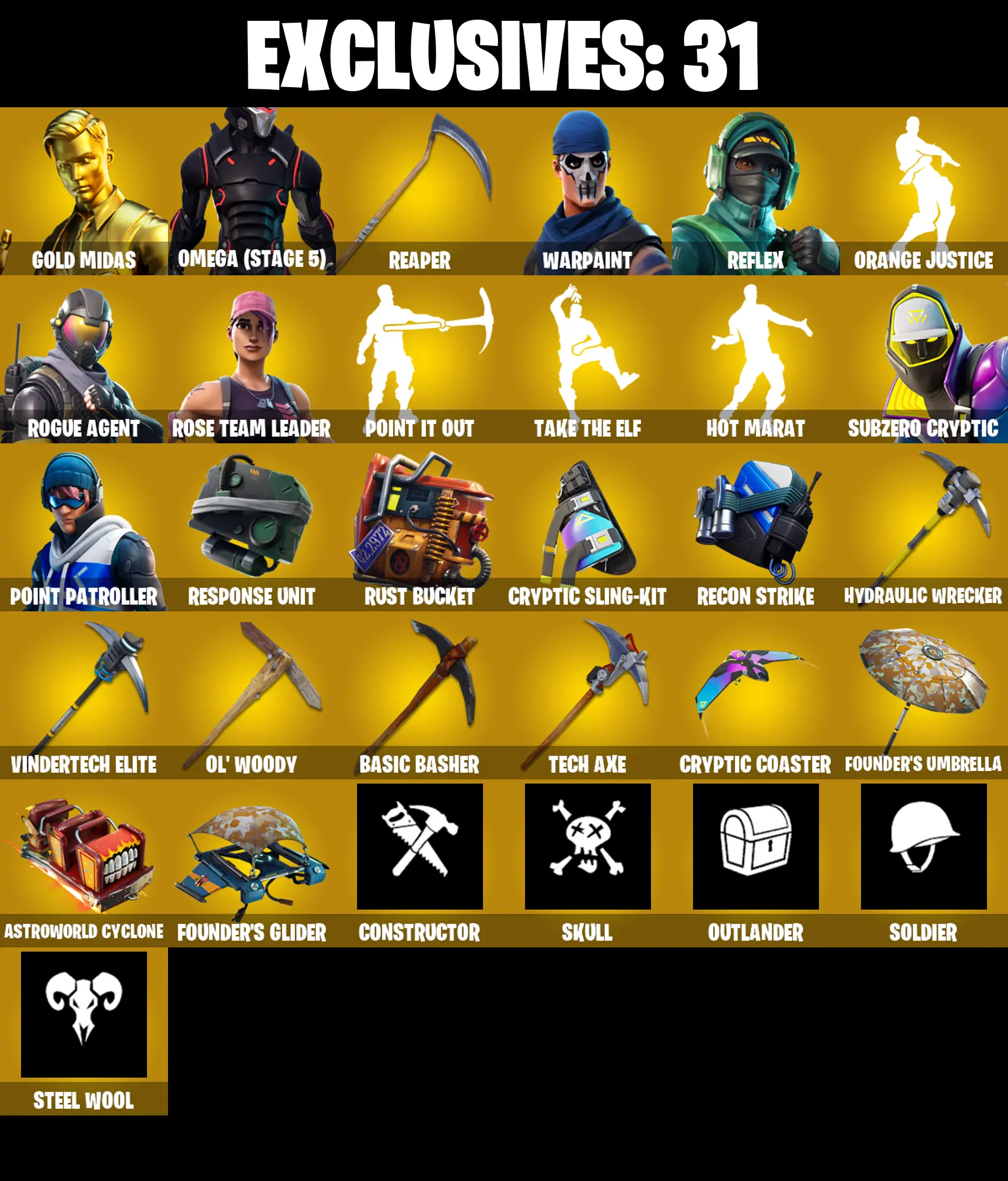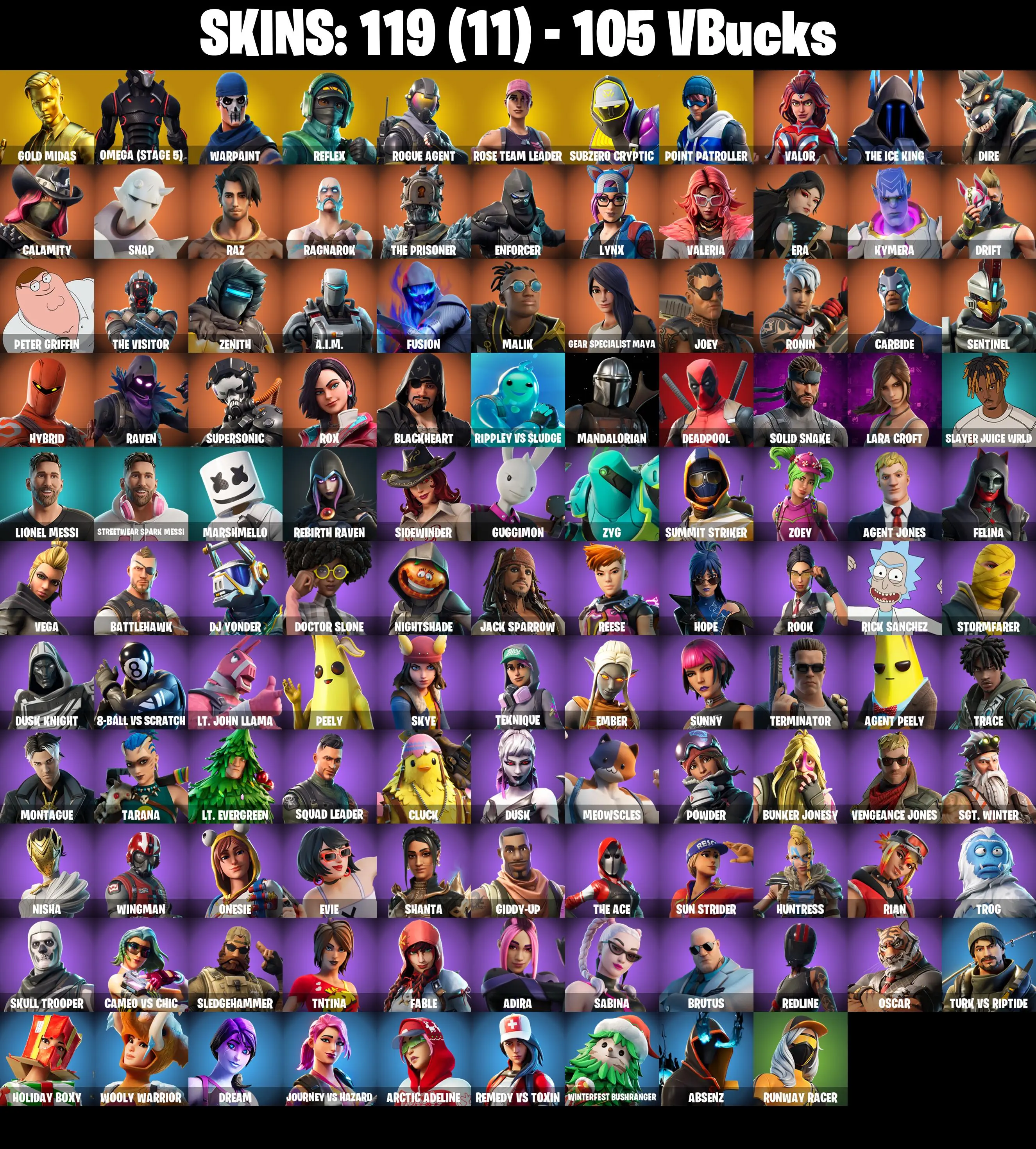 PC/PSN/XBOX ♨️119 skins ✨ OG STW ✨ Lara Croft ✨ Deadpool ✨ Gold Midas ✨ Omega (stage 5) ✨ Reaper ✨ Reflex ✨ Orange Justice ✨ Rogue Agent ✨ Drift ✨ #B822