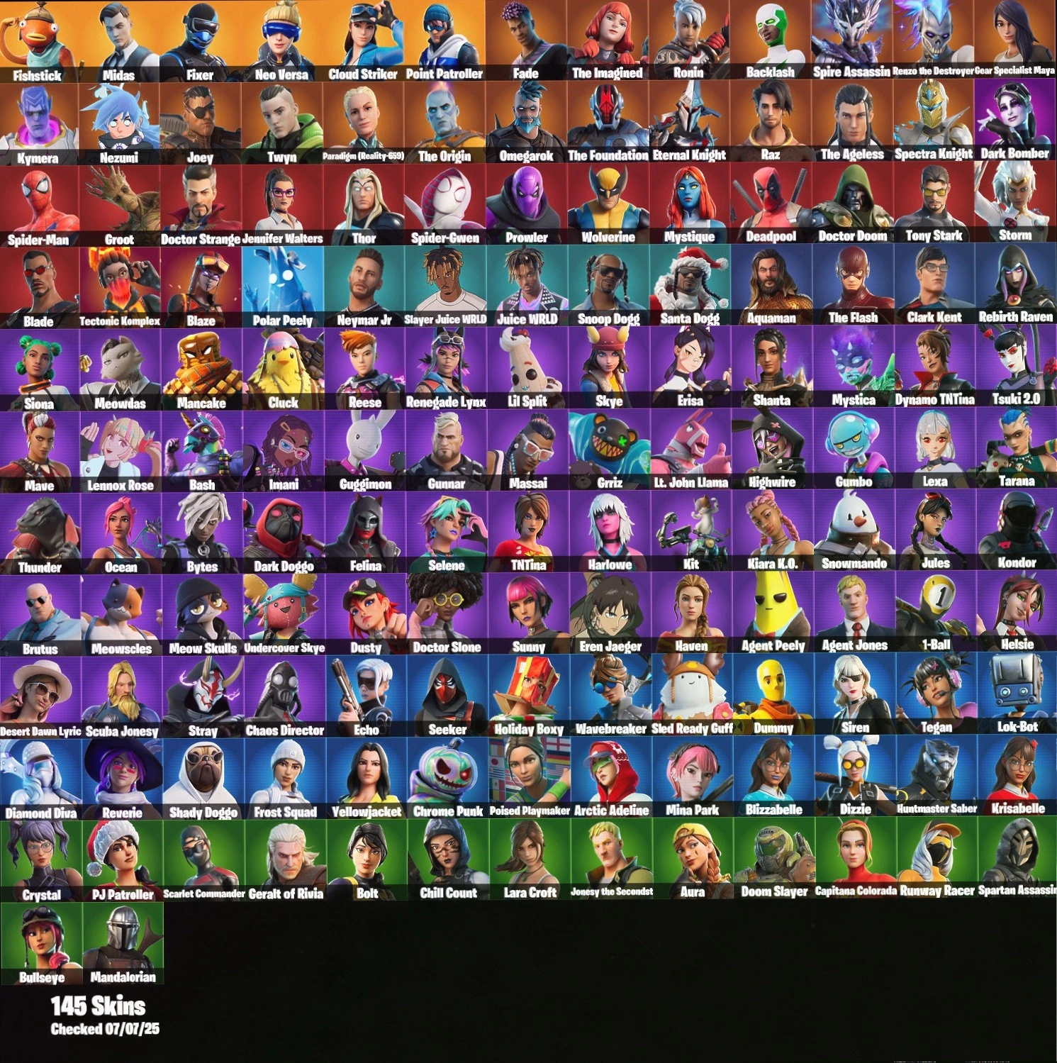 [PC/PSN/XBOX] 145 Skins+Neo Versa+Fishstick+Midas+Fixer+Cloud Striker+Point Patroller+FNCS Holoflair+Recon Strike+300 VB ⸱ PARENTAL CONTROL #LOT-167186