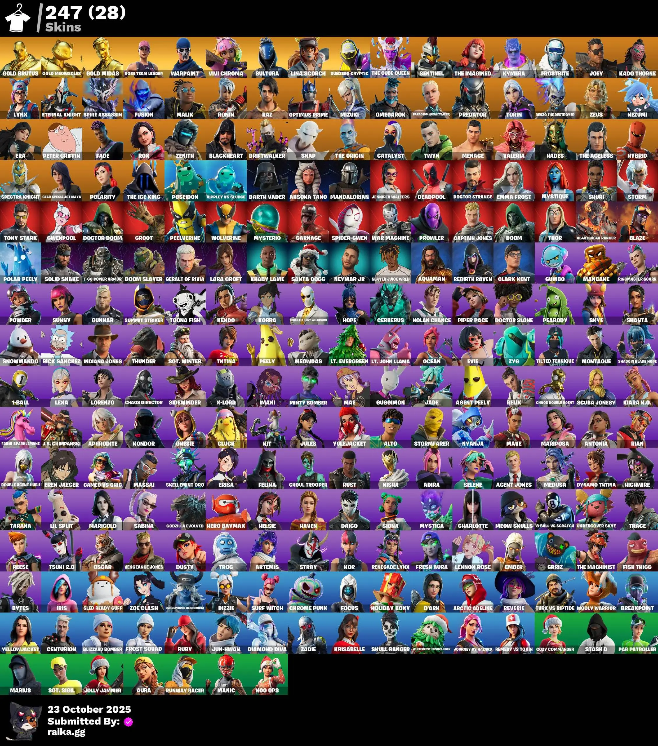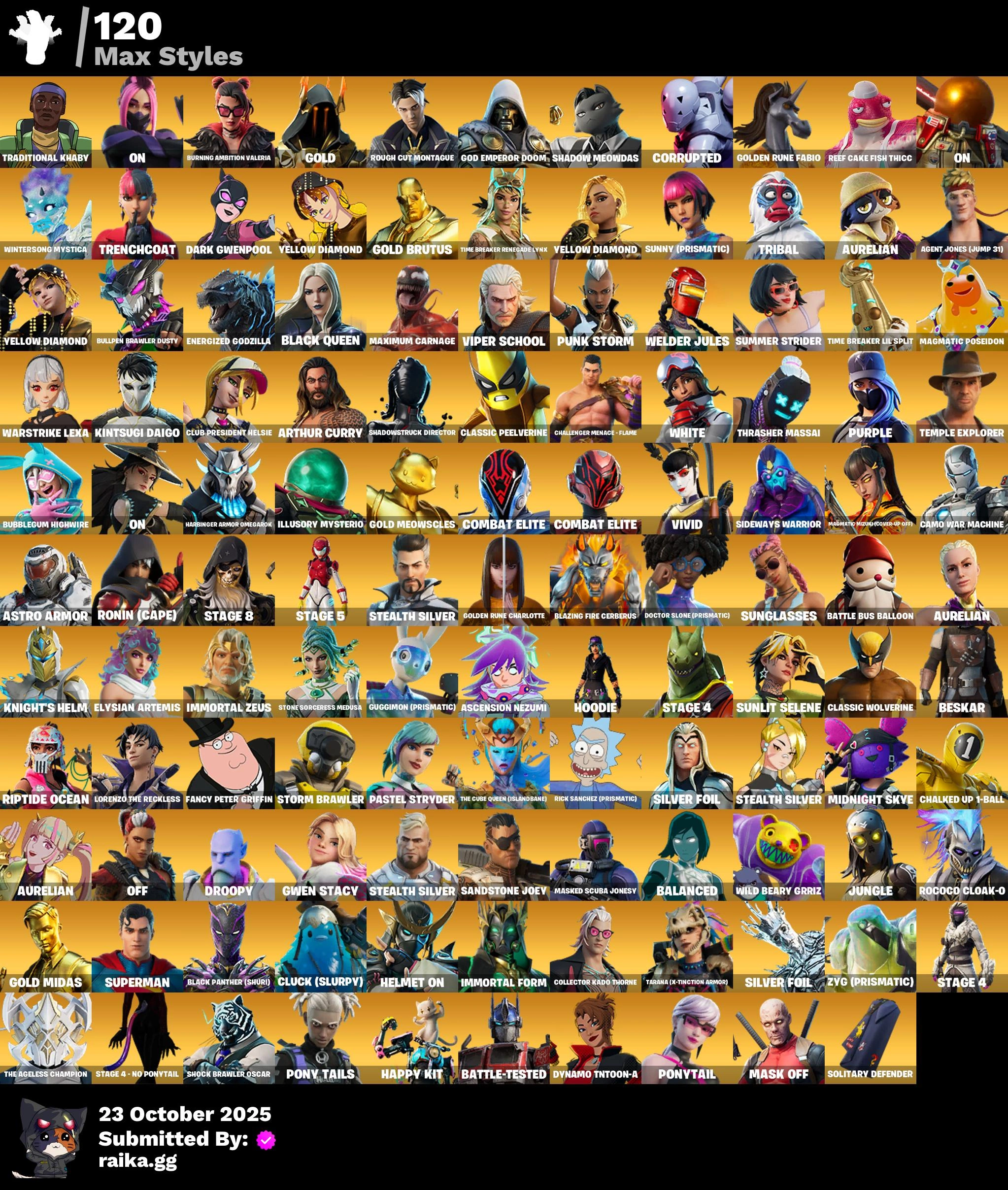 [PC/PSN/XBOX] 247 skins | OG STW | Gold Brutus | Gold Meowscles | Gold Midas | Vivi Chroma | Sultura | Lina Scorch | Subzero Cryptic | The Cube Queen | 1550 VB