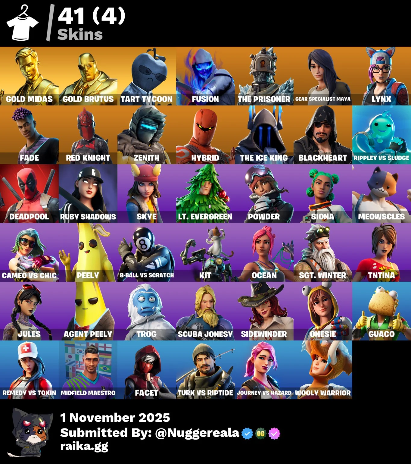 [PC/PSN/XBOX] 41 skins | Gold Midas | Gold Brutus | Tart Tycoon | Fusion | The Prisoner | Gear Specialist Maya | Lynx | Fade | Red Knight | Zenith | Hybrid | 400 VB
