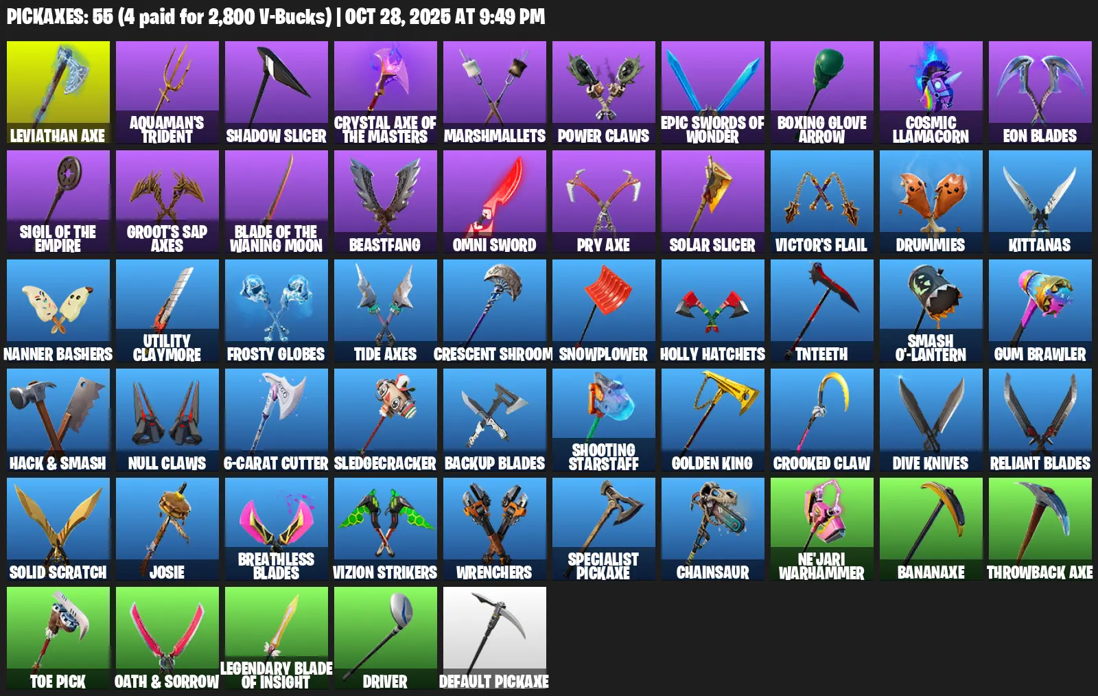 [PC/PSN/XBOX] | 43 skins | Leviathan Axe | Lara Croft | Rue | Rogue Spider Knight | Eternal Knight | Mandalorian | Midas | Menace | Galaxia | S4G
