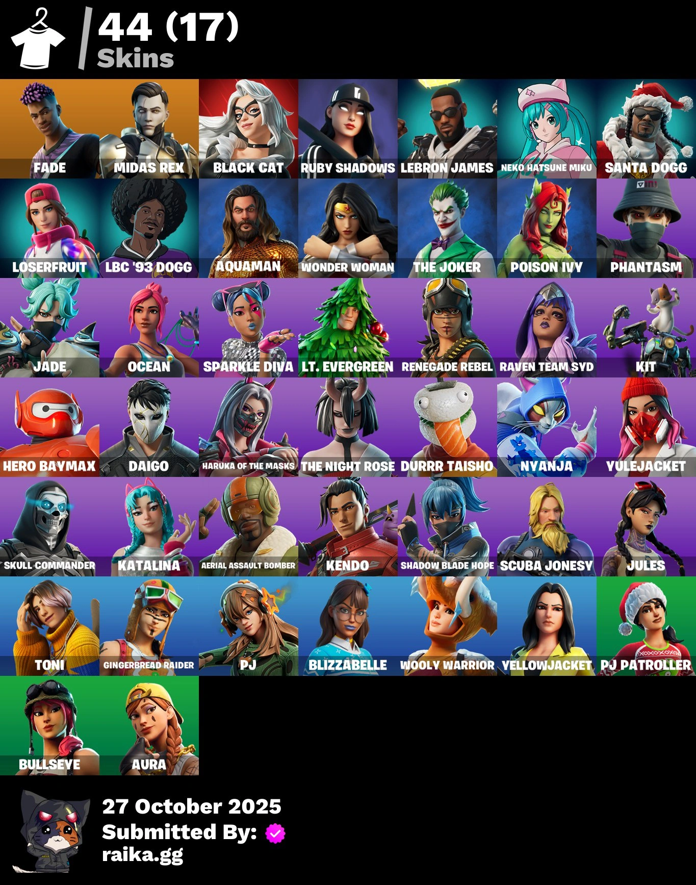 [PC/PSN/XBOX] 44 skins | Fade | Midas Rex | Black Cat | Ruby Shadows | LeBron James | Neko Hatsune Miku | Santa Dogg | Loserfruit | LBC '93 Dogg | Aquaman | 2650 VB