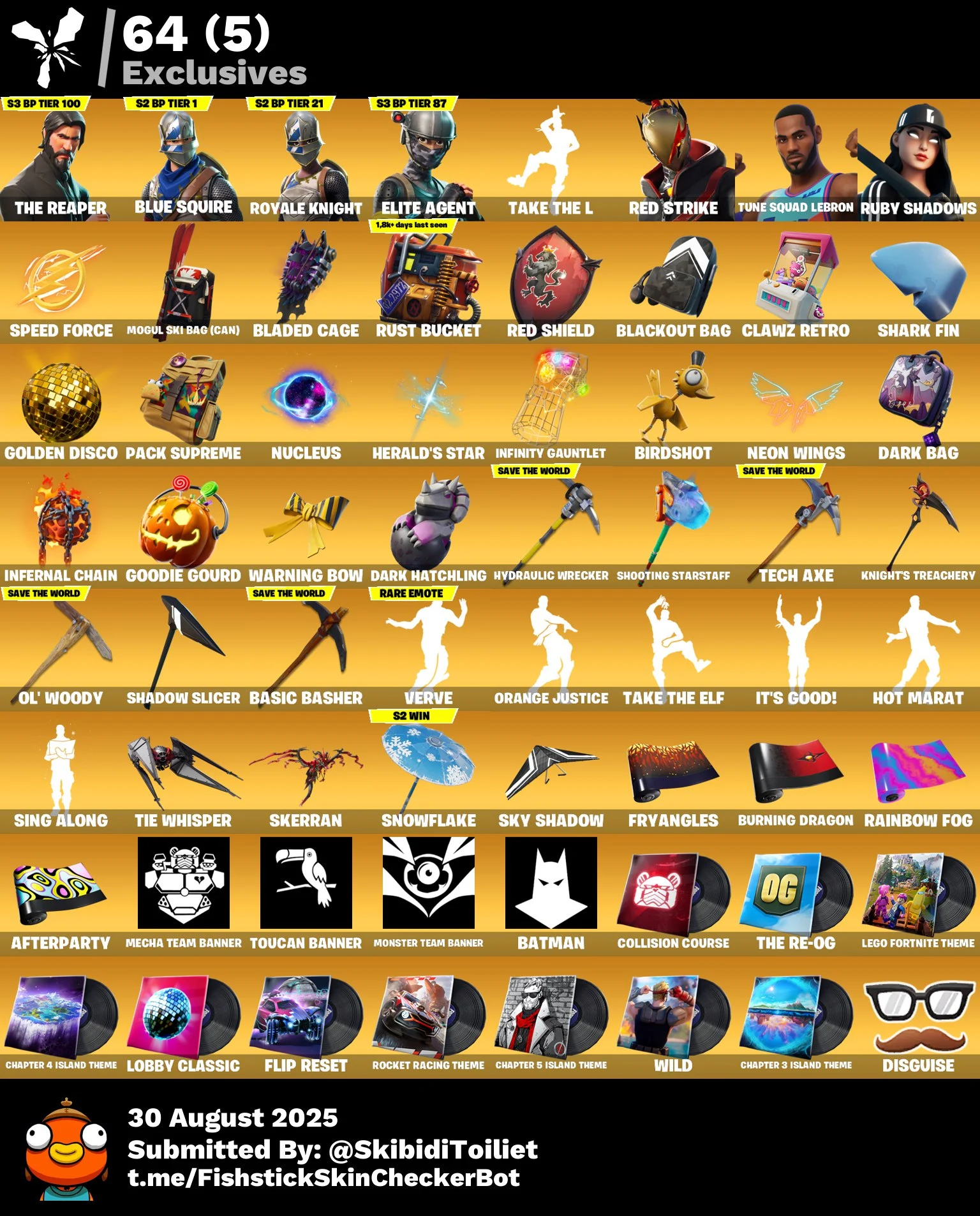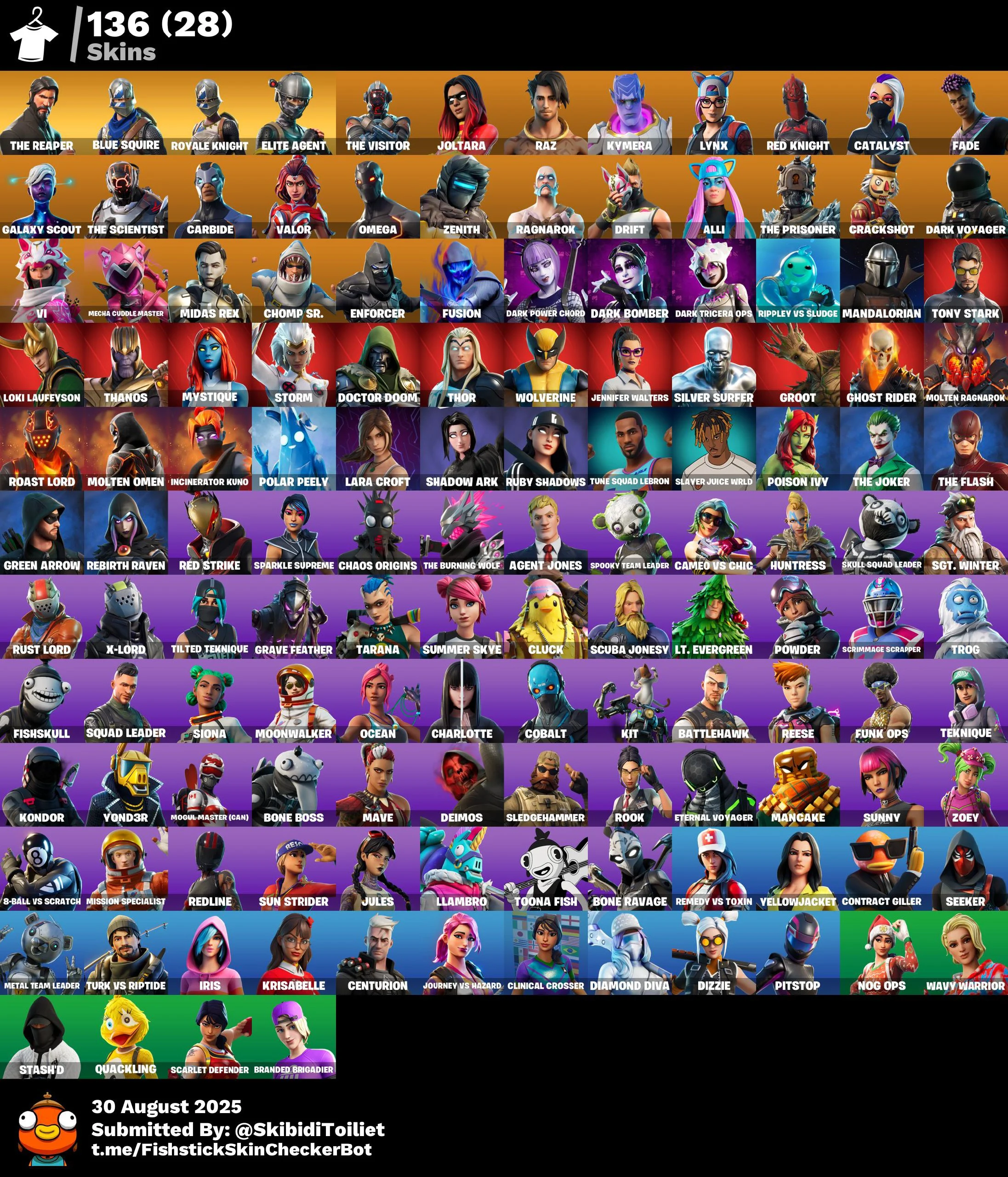 [PC/PSN/XBOX/SWITCH] 136 Skins | The Reaper | Blue Squire | Royale Knight | Elite Agent | The Visitor | Joltara | Raz | Kymera | Lynx | Red Knight | Catalyst | 1070 VB | Original Email