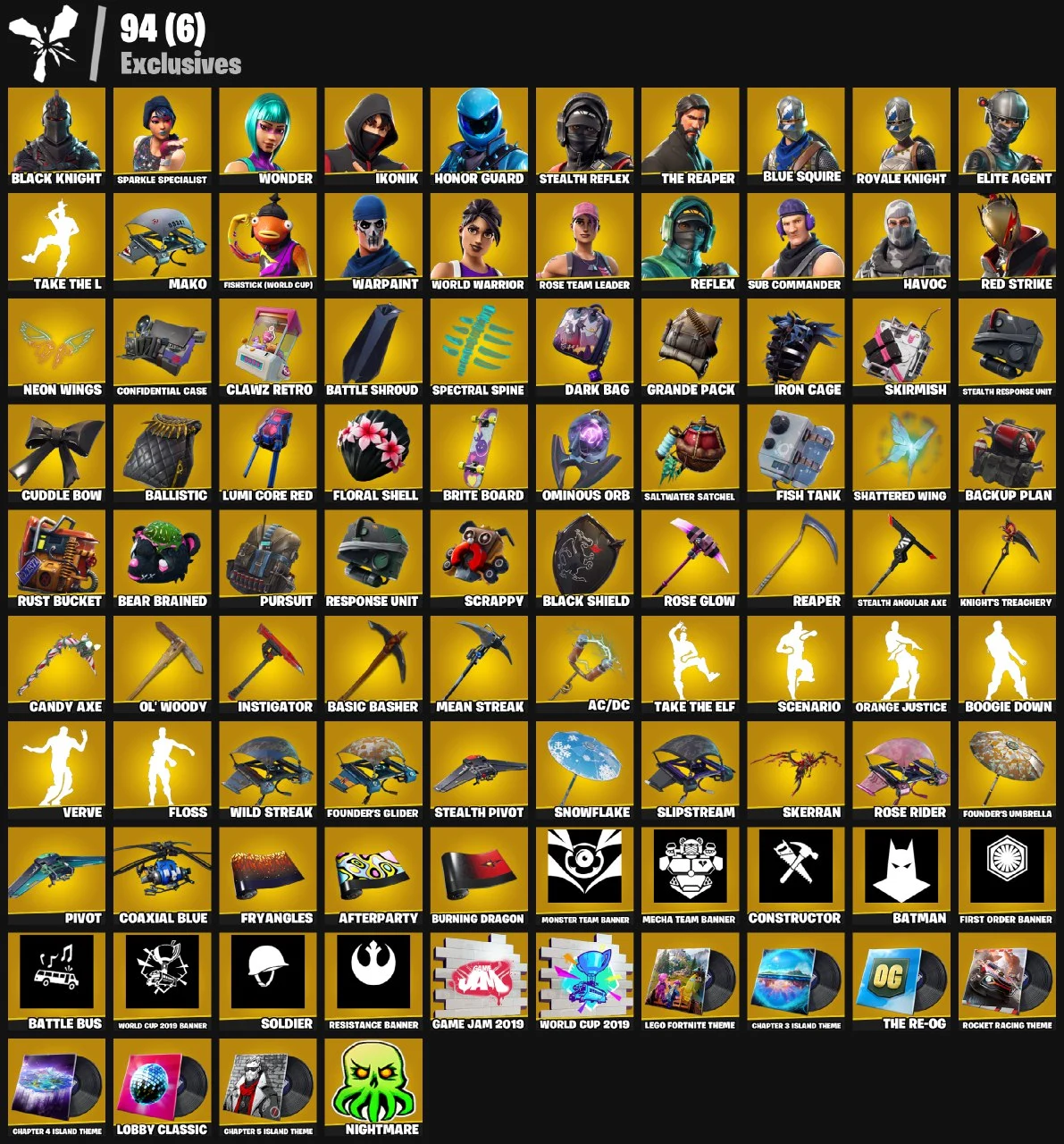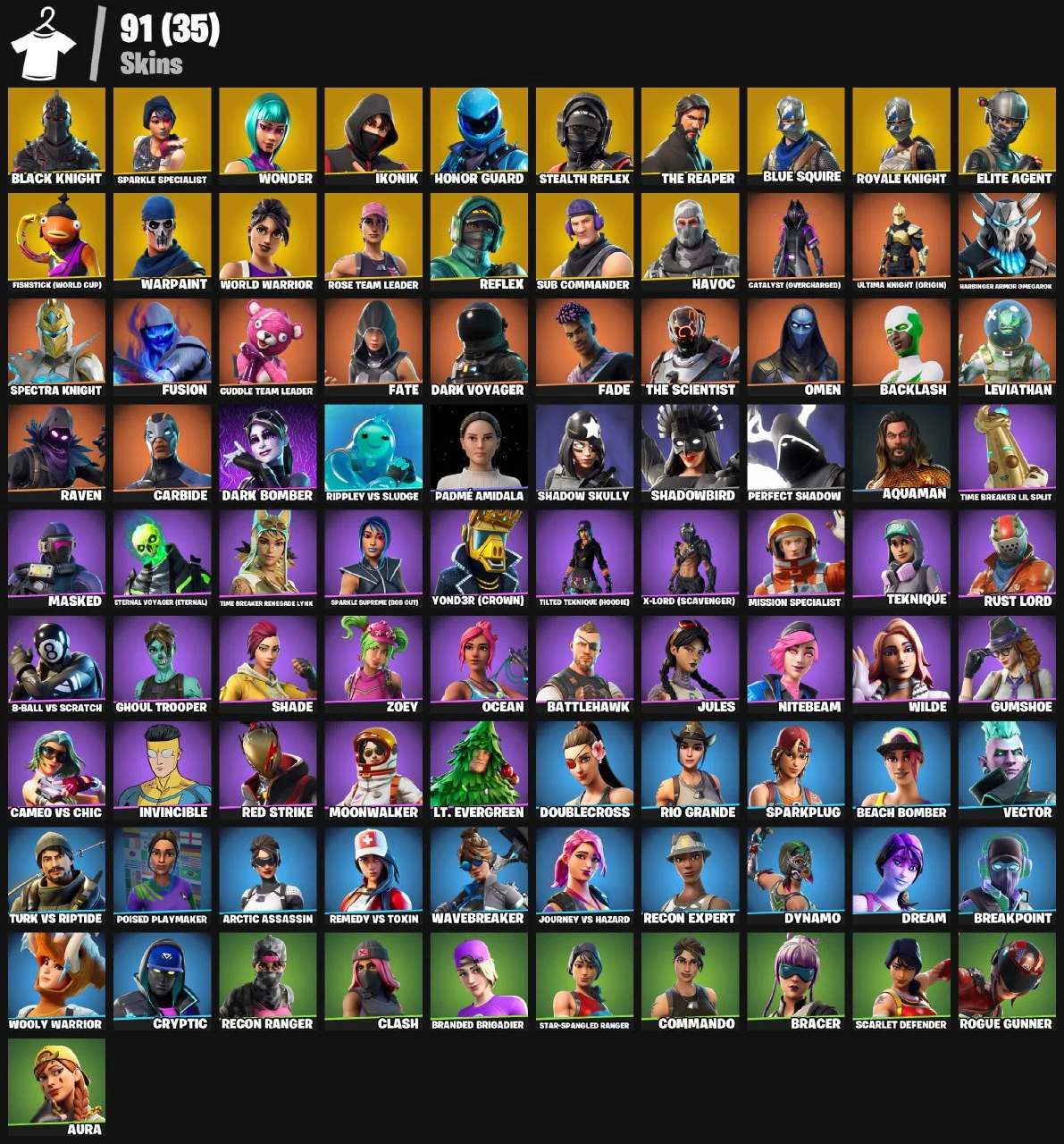 ⭕PC/PS/XB⭕91 Skins + Black Knight + IKONIK + Wonder + Honor Guard + Stealth Reflex + World Warrior + MAKO + OG Save The World + Orange Justice + Sparkle Specialist + Elite Agent + The Reaper + Take The L + Floss + Blue Squire + Royale Knight | 450Vbucks