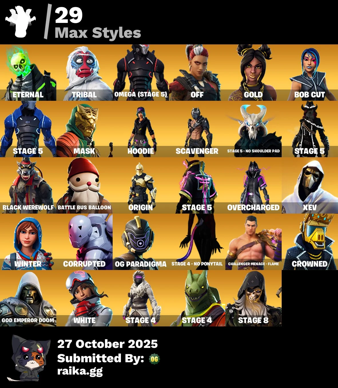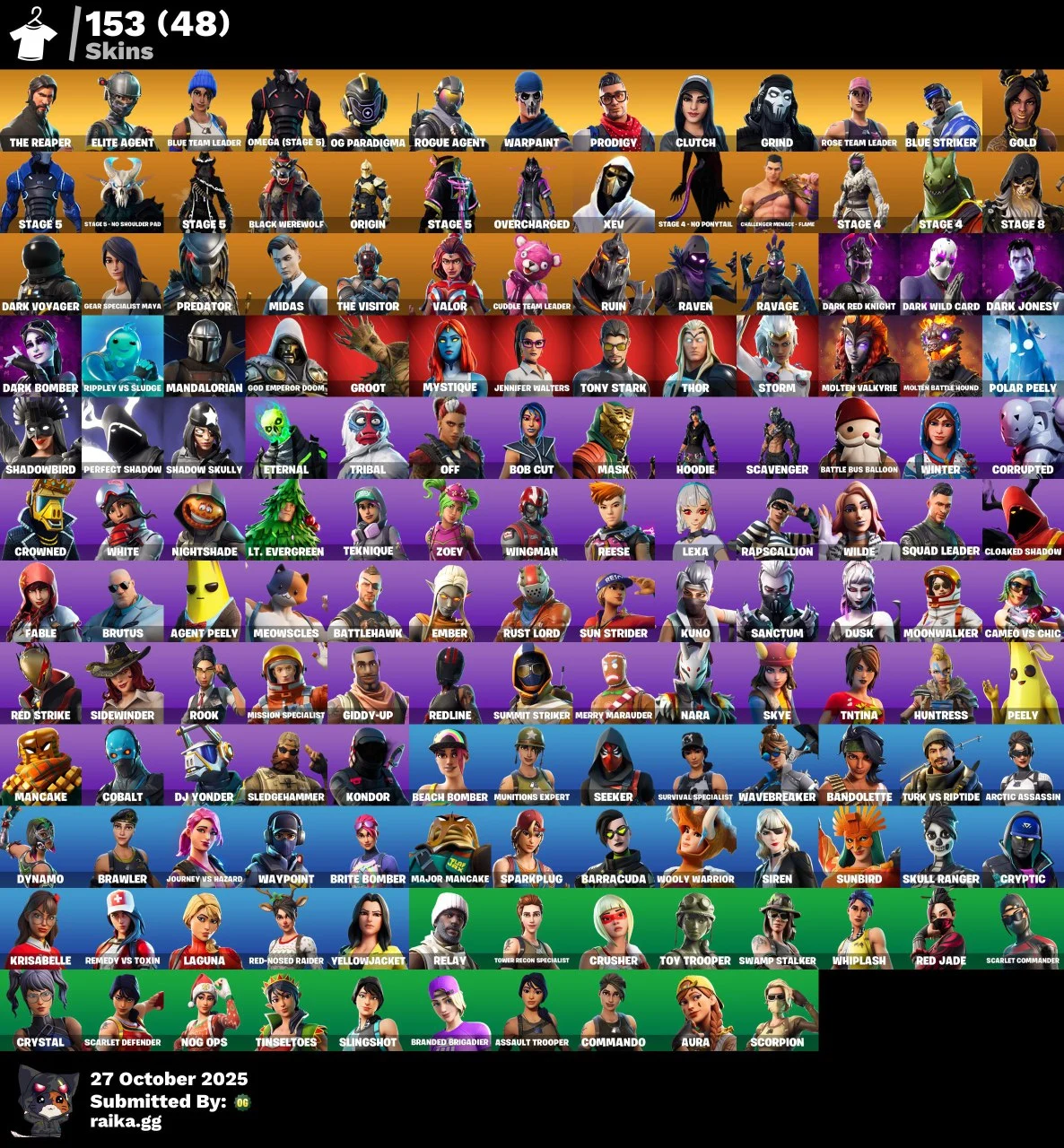 [PC/XBOX] 153 skins | OG STW | The Reaper | Leviathan Axe | Take The L | Merry Mint Axe | Aura | Elite Agent Mam114