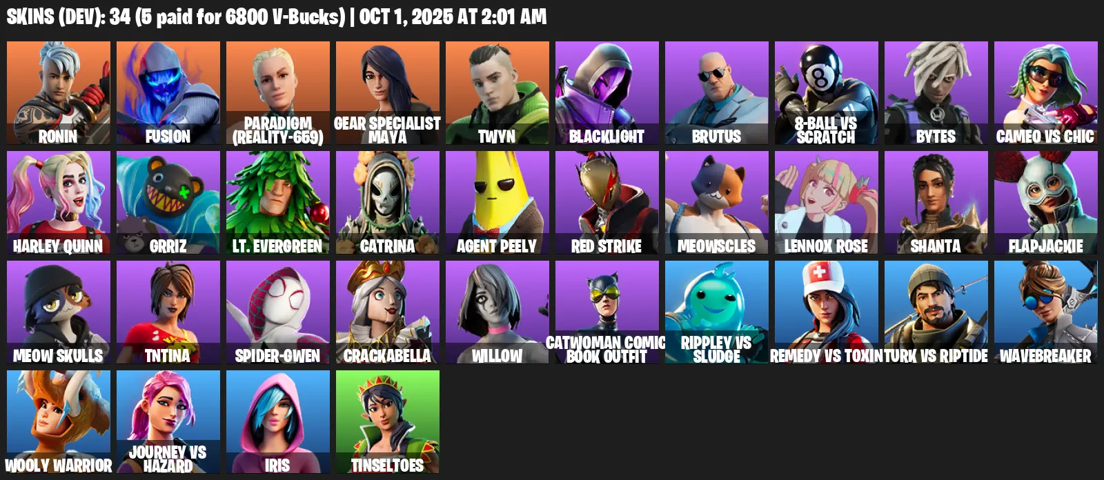 PC/XBOX 34 Skins⚡ | Ronin | Fusion | Paradigm (Reality-659) | Gear Specialist Maya | Twyn | Blacklight | Brutus | 8-Ball vs Scratch | Bytes | Cameo vs Chic