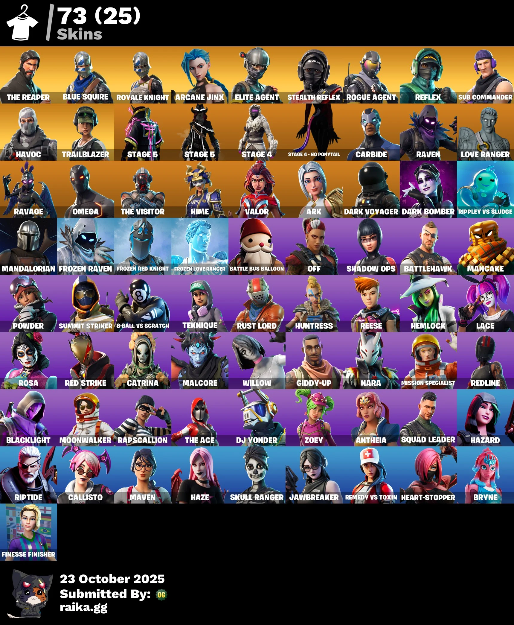 [PC/XBOX] 73 skins | The Reaper | Blue Squire | Royale Knight | Arcane Jinx | Take The L | Elite Agent | Raven Mam74