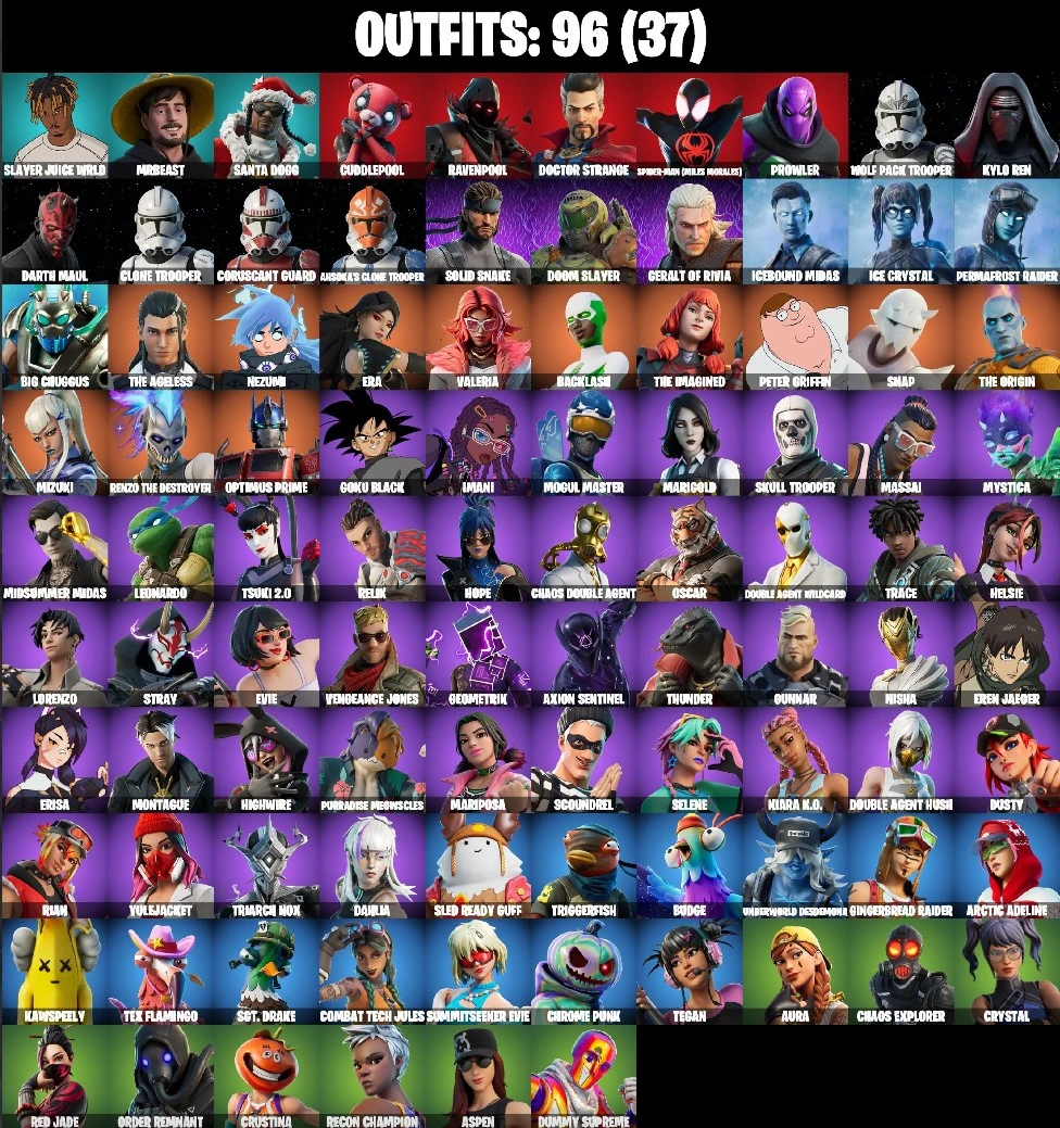 (PSN/XBOX/PC/SWITCH) 💠 96 SKINS 💠 Ice Crystal 💠 Cuddlepool 💠 Backlash 💠 Big Chuggus 💠 Clone Trooper 💠 Ravenpool 💠 Valeria 💠 Mizuki 💠 Darth Maul 💠 Era