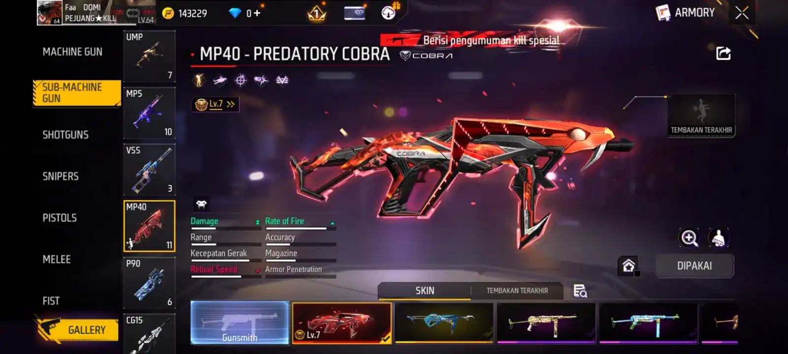 V6|LVL64|297COSTUME(25MYTHIC)|322WEAPON(3EVO+64MYTHIC)|PREDATORYCOBRA-MP40LVLMAX|SCORPIOSHATTER-M1014LVL5|MAJESCTICPROWLER-WOODPECKERLVL5