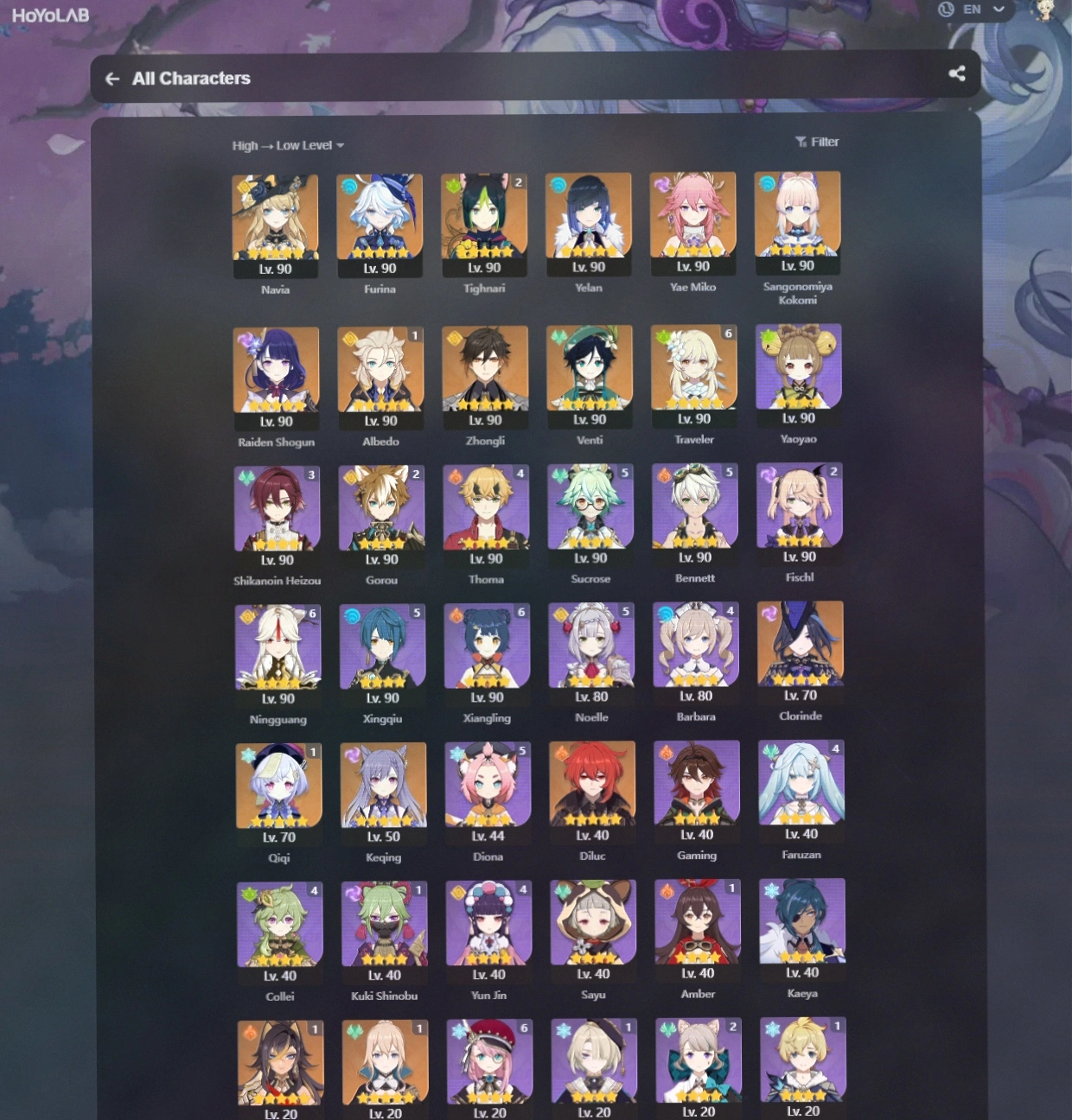 [ASIA HANDLEVELED] AR 59 + Albedo C1+Clorinde+Furina|Sign+Navia+Yelan+Yae Miko+Kokomi+Raiden+Zhongli + FULL ACCESS + EMAIL #ACC-165565