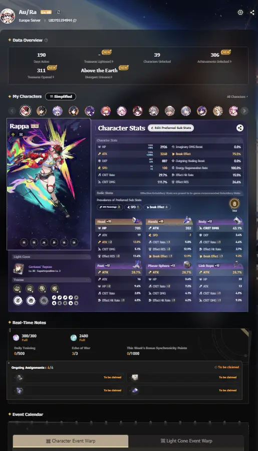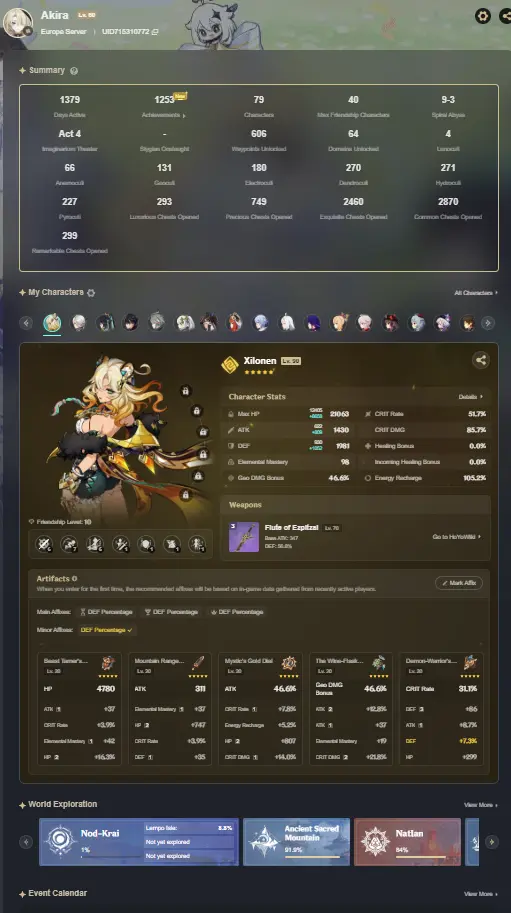 EU | AR 60 | 79 characters · 35 legendary | Arlecchino + Xilonen , Escoffier , Furina and others
