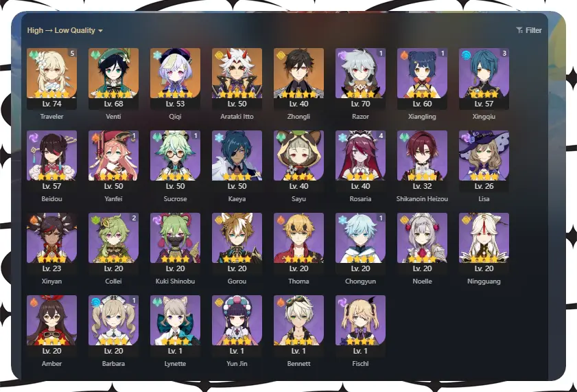 [NA] ✅ AR 42 | 30 CHARACTERS | 4 LEGENDARY | VENTI ⸱ QIQI ⸱ ARTAKI ITTO ⸱ ZHONGLI ⸱ RAZOR ⸱ XIANGLING | 220 ACHIEVEMENTS | INSTANT DELIVERY | FULL ACCESS
