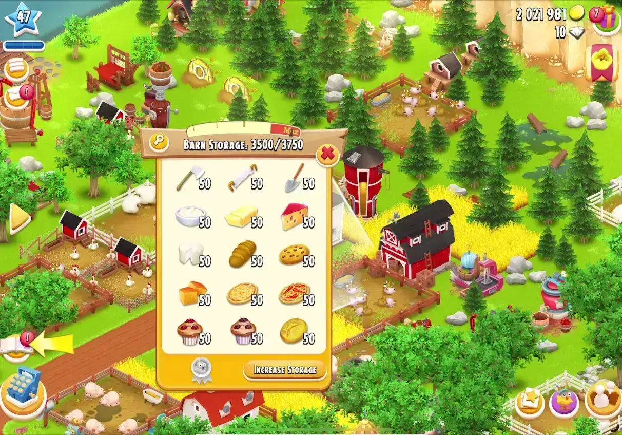3750 BARN | 47 LVL | 1050 SILO | 10 DIAMONDS | 2021981 COINS | WHEAT | SAW | AXE | SHOVEL | CHEESE | CREAM | BUTTER | SPICY PIZZA | BLACKBERRY MUFFIN | FULL ACCESS | IOS/ANDROID (SCREENSHOTS INSIDE)