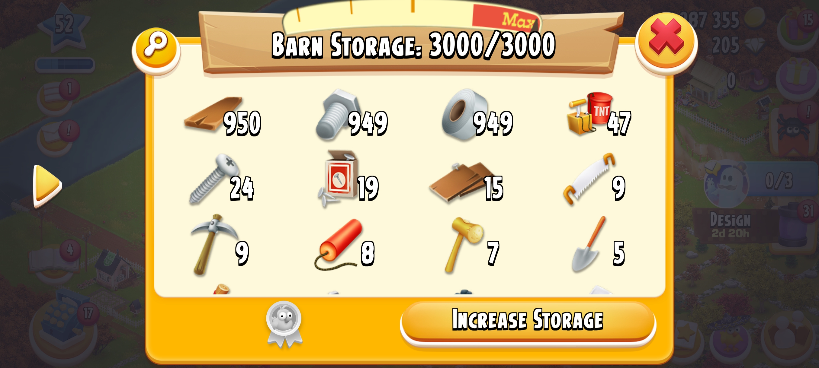 🏆 LEVEL 52 🏚️ 3000 Barn Storage🛠️ Fully Filled With barn Tools 🌾 825 Silo Storage💰 1.2M+ Coins & 💎 205 Diamonds⚡ Instant Delivery