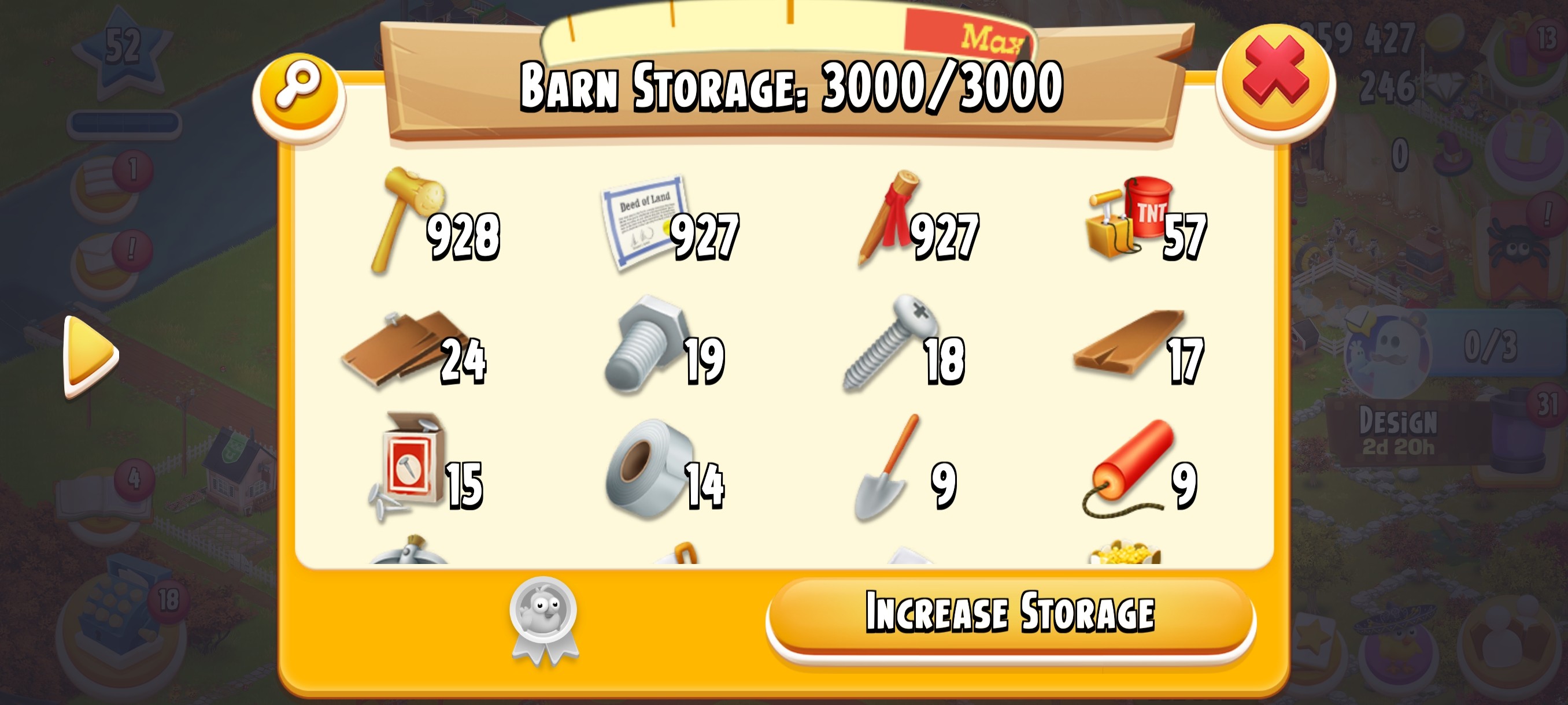 🏆 LEVEL 52 🏚️ 3000 Barn Storage🛠️ Fully Filled With Land Tools 🌾 825 Silo Storage💰 1.3M+ Coins & 💎 246 Diamonds⚡ Instant Delivery