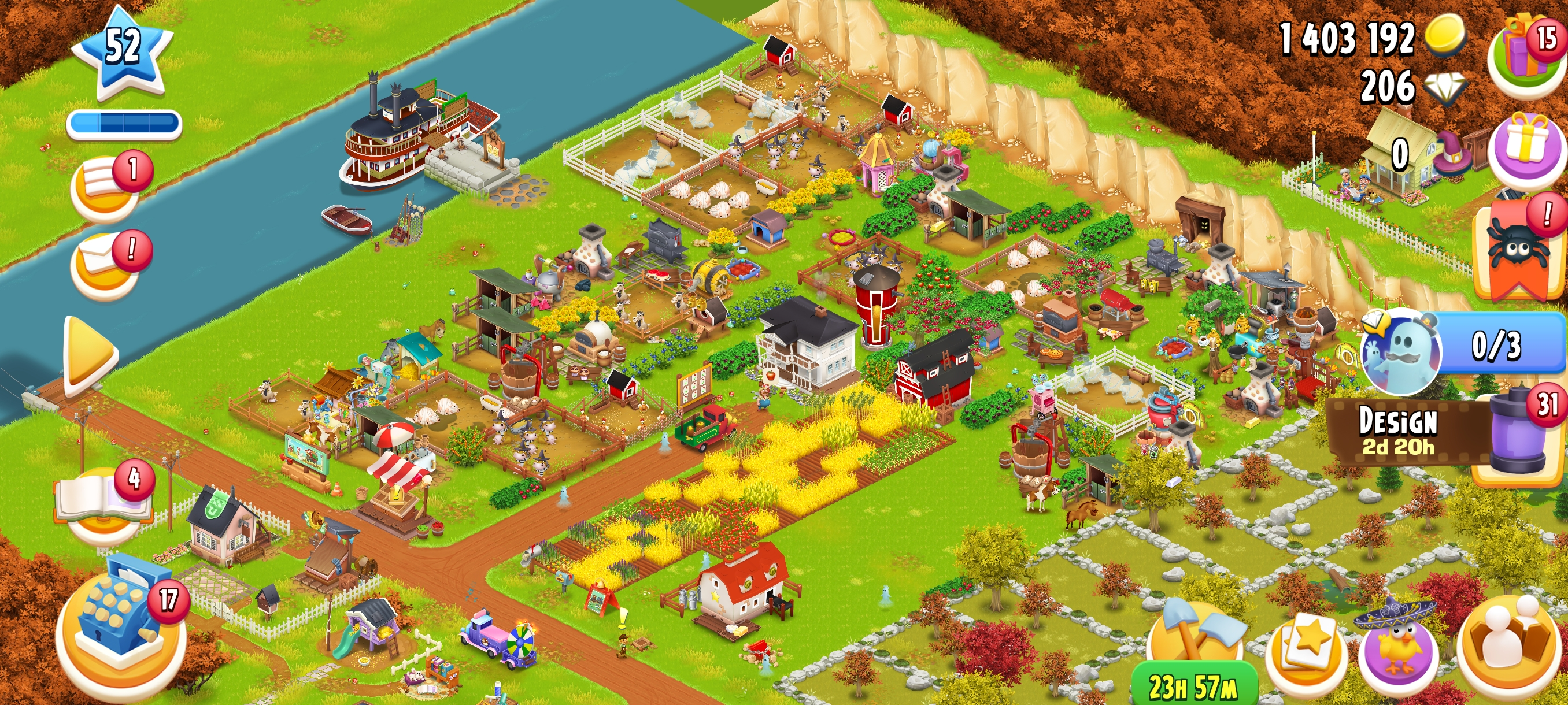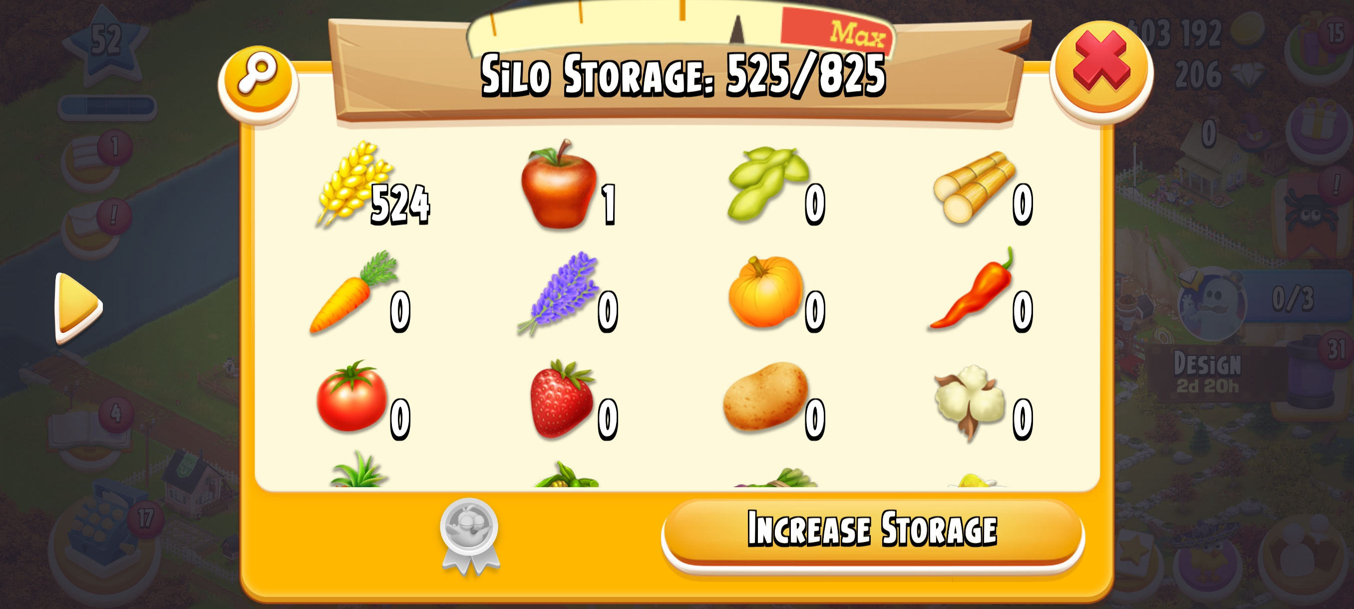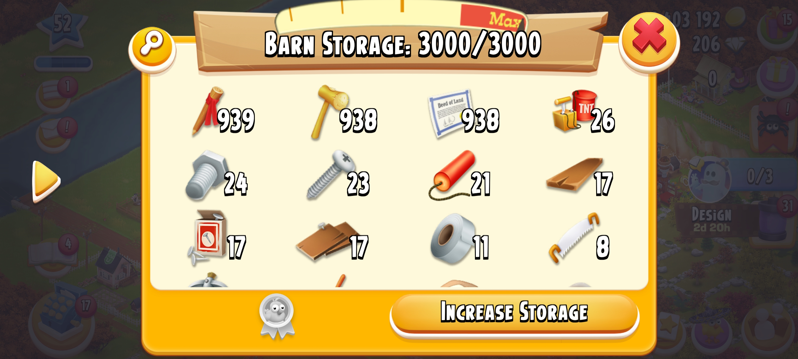 🏆 LEVEL 52 🏚️ 3000 Barn Storage🛠️ Fully Filled With Land Tools 🌾 825 Silo Storage💰 1.4M+ Coins & 💎 206 Diamonds⚡ Instant Delivery