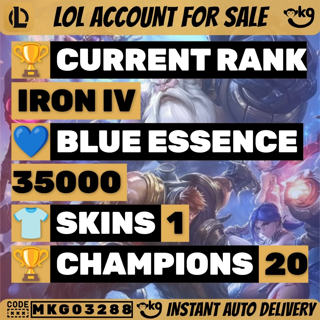 🏆 EUW ✨Iron IV 0LP (out of placment )⌛New Season 🚀 +35k BLUE 🔥 +20champ🔥0 ⸱ 3+ Skins 🔥Verified / Unverified account ⚡ Instant Delivery ✅ Full Access !MKG03288