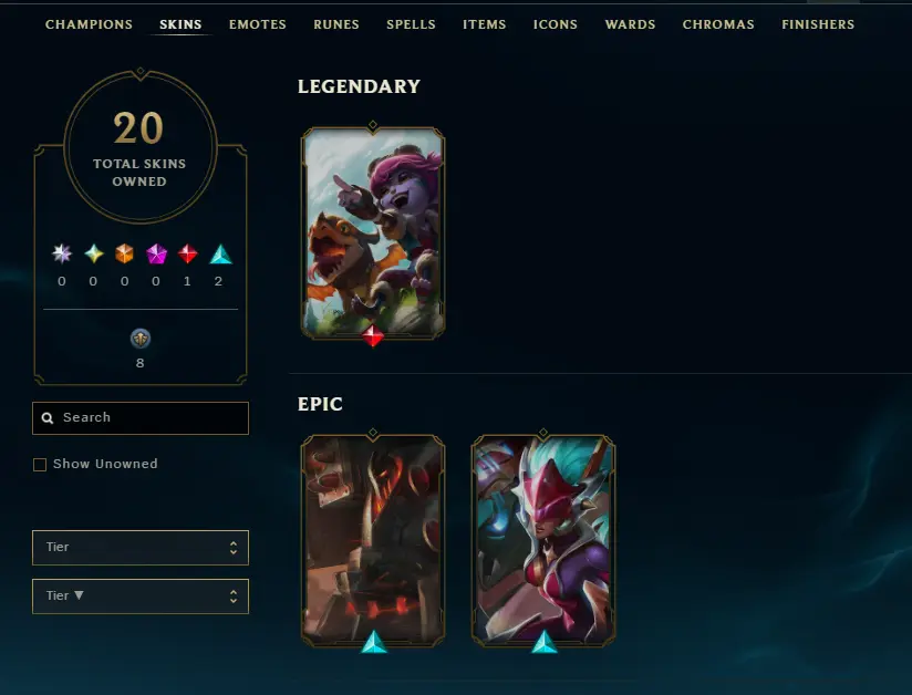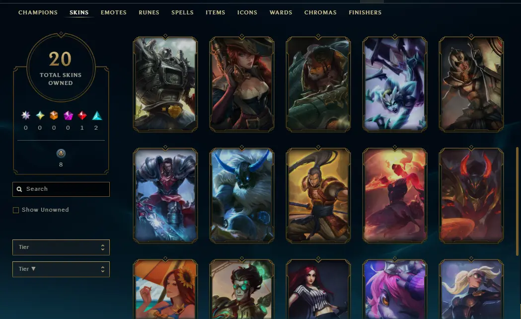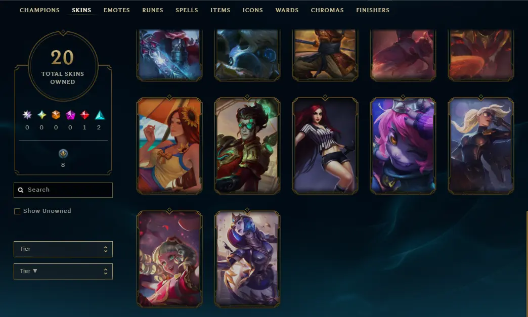 🌍 [EUNE] — 🆙 Lv.39 — 💤 Unranked — 🎭 20 Skins — 💎 2,691 BE — 🪙 56 RP — 🏅 Honor Lv.3 — ⚔️ 62 Champs