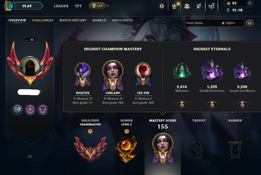 HUGE SALE!🔥LVL82 Grandmaster 750LP 70%WR Handleveled💎21K BE 33Skins✅Lifetime Ownership Guarantee ⸱ Never Taken Back
