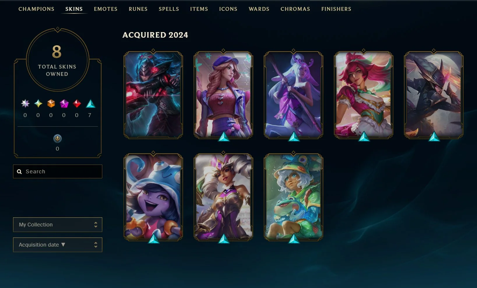 LOL67 //10 Skins, 42 Champions, 6.3K Blue Essence, Skins for Caitlyn