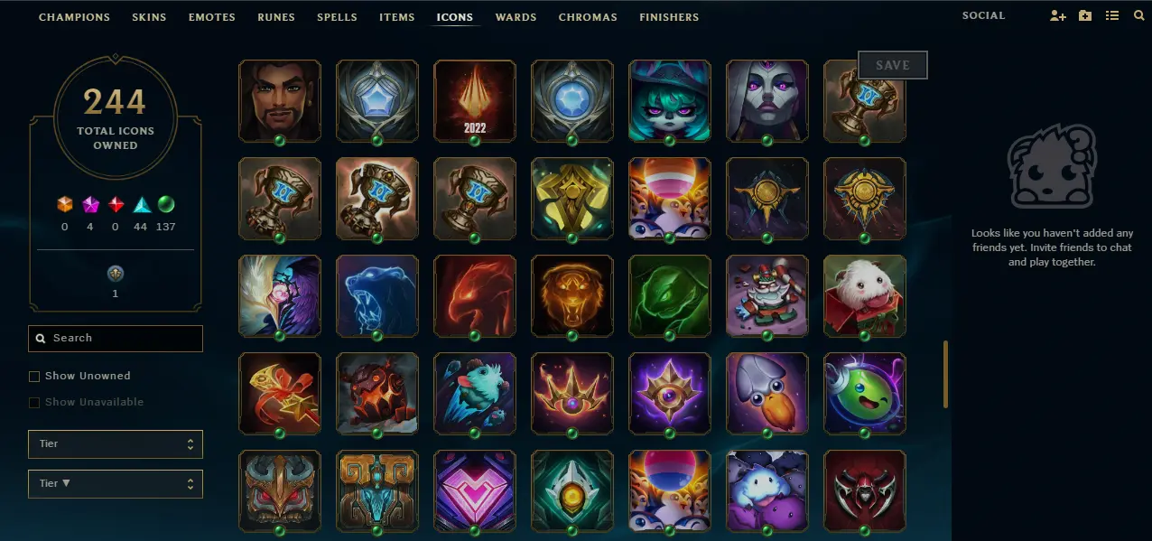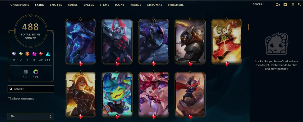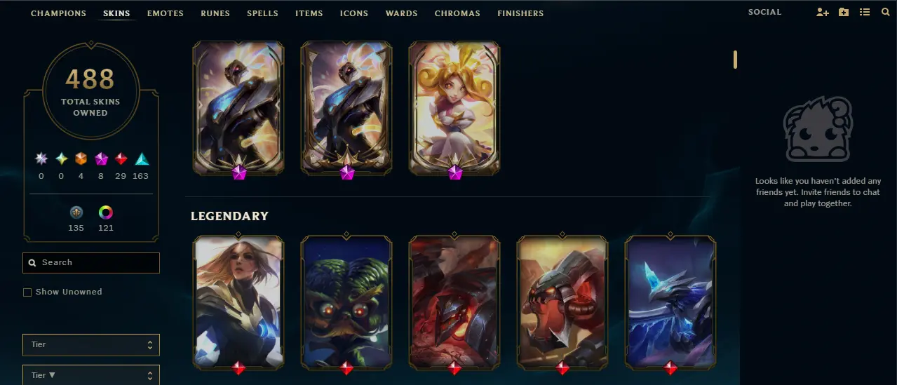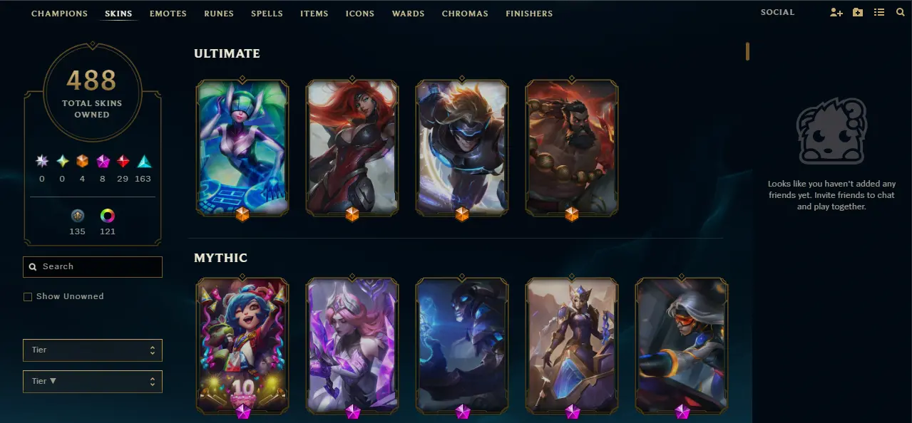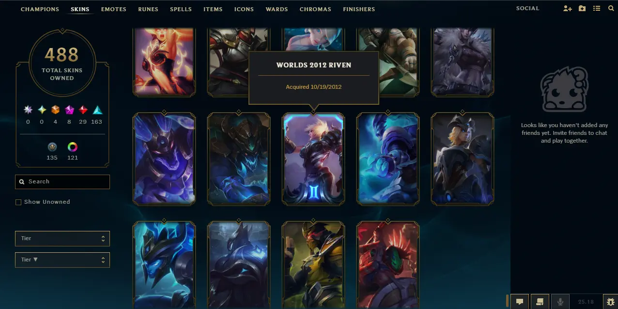 [NA] 488 skins ~ Championship Riven 2012 + PAX Sivir + Prestige Pulsefire Thresh&2022 + Crystalis Motus Leona + 124 Chromas + 244 Icons~Vengeful Wraith+Other Rare