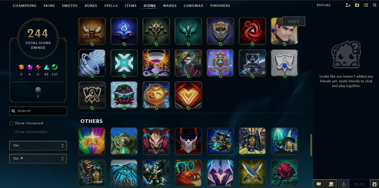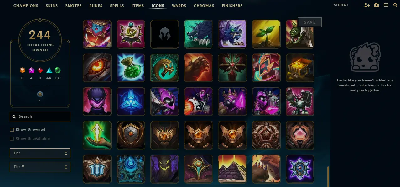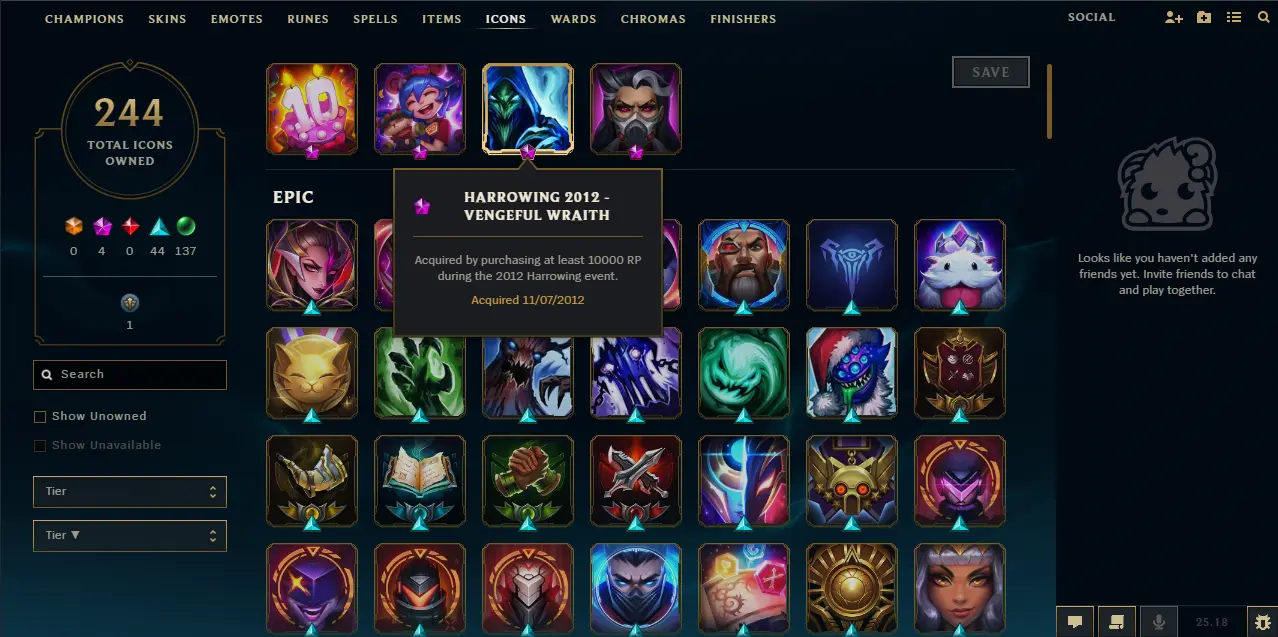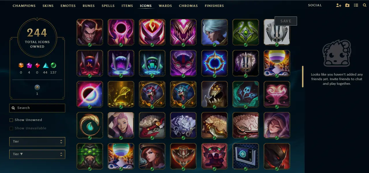 [NA] 488 skins ~ Championship Riven 2012 + PAX Sivir + Prestige Pulsefire Thresh&2022 + Crystalis Motus Leona + 124 Chromas + 244 Icons~Vengeful Wraith+Other Rare