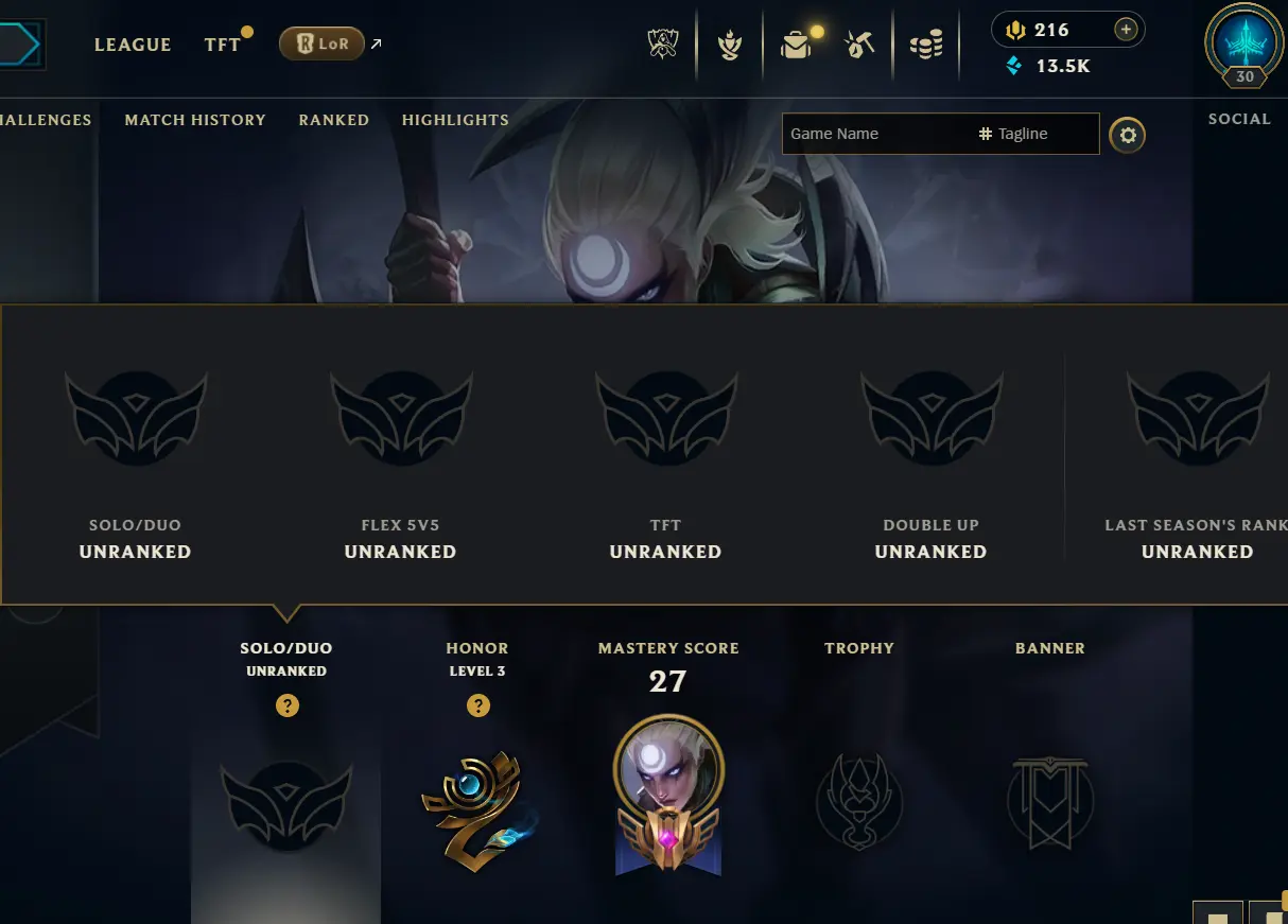 【NA】🌍-LEVEL 30✔- 6 SKIN 💎UNRANKED🔥[13.5K BE, 216RP]✨ 35 CHAMP✅️FULL ACCESS-Mail Changeable-🔥INSTANT DELIVERY🔥
