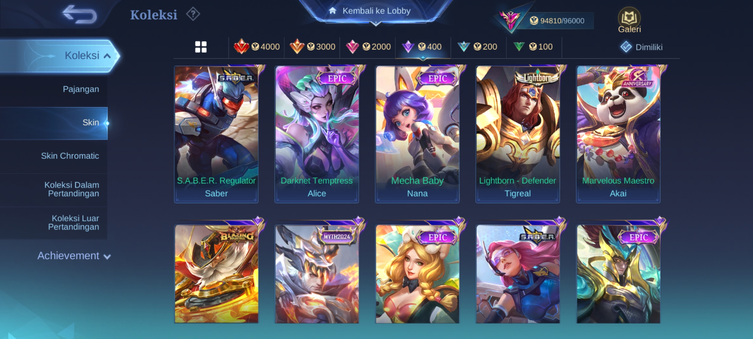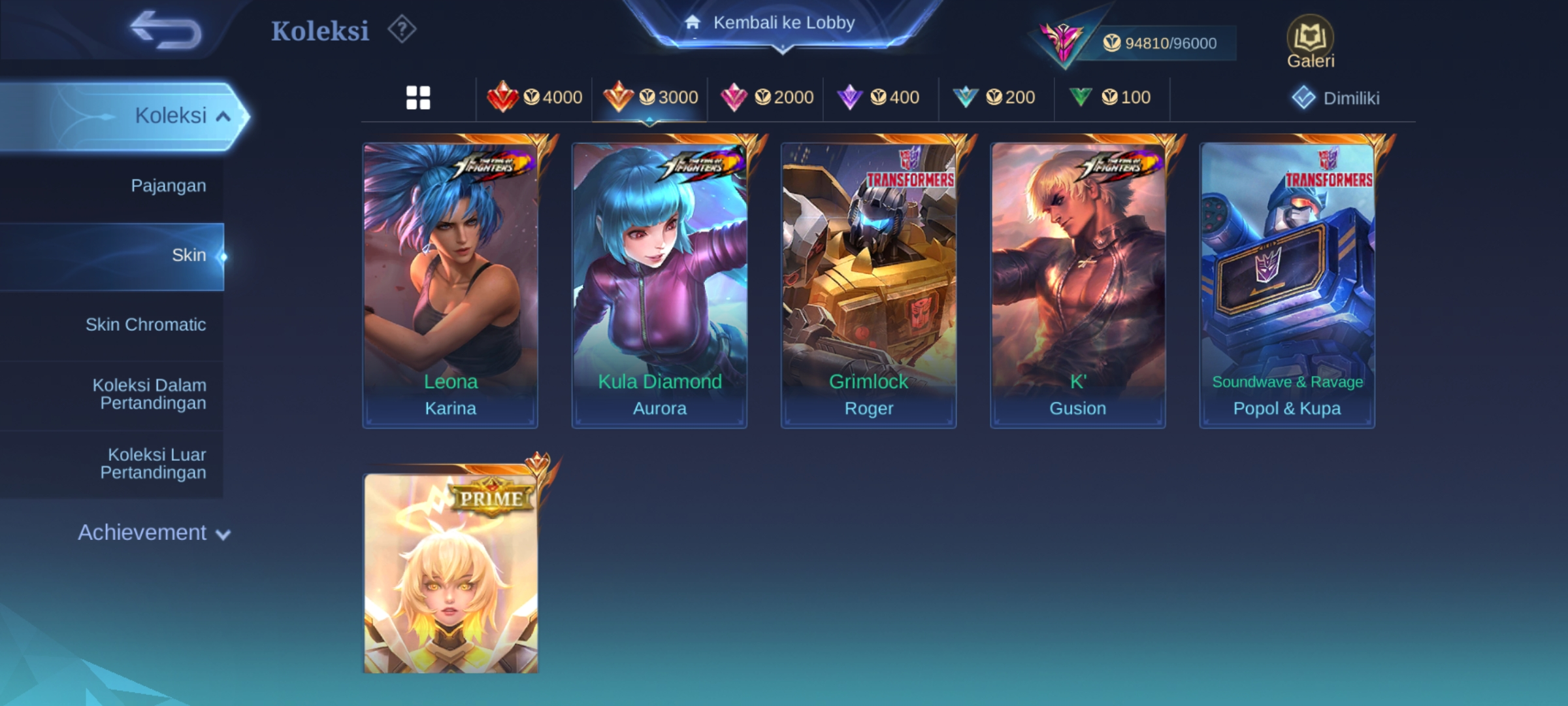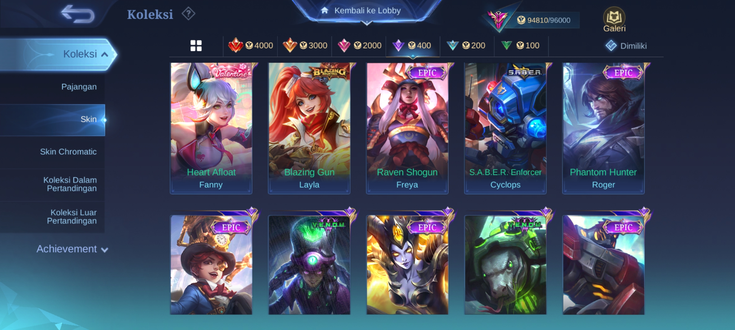 ![ML-279 Skins 316 [ Legend Freya ] KOF Valir x Karina / Collector Pharsa x Natalia / Sanrio Floryn / Champions Brody / Anual Haya](https://cdn.gameboost.com/games/mobile-legends/tiers/sm/grandmaster.webp)