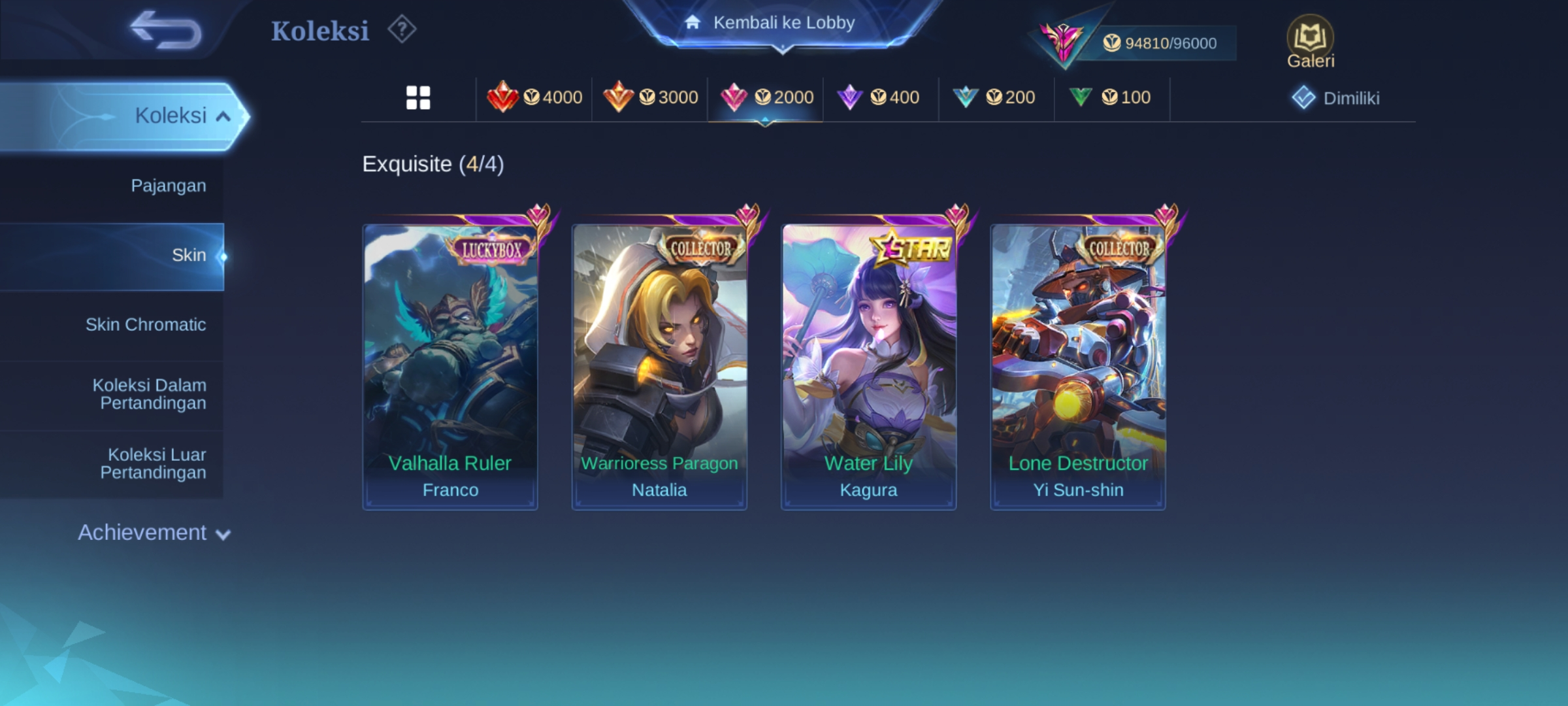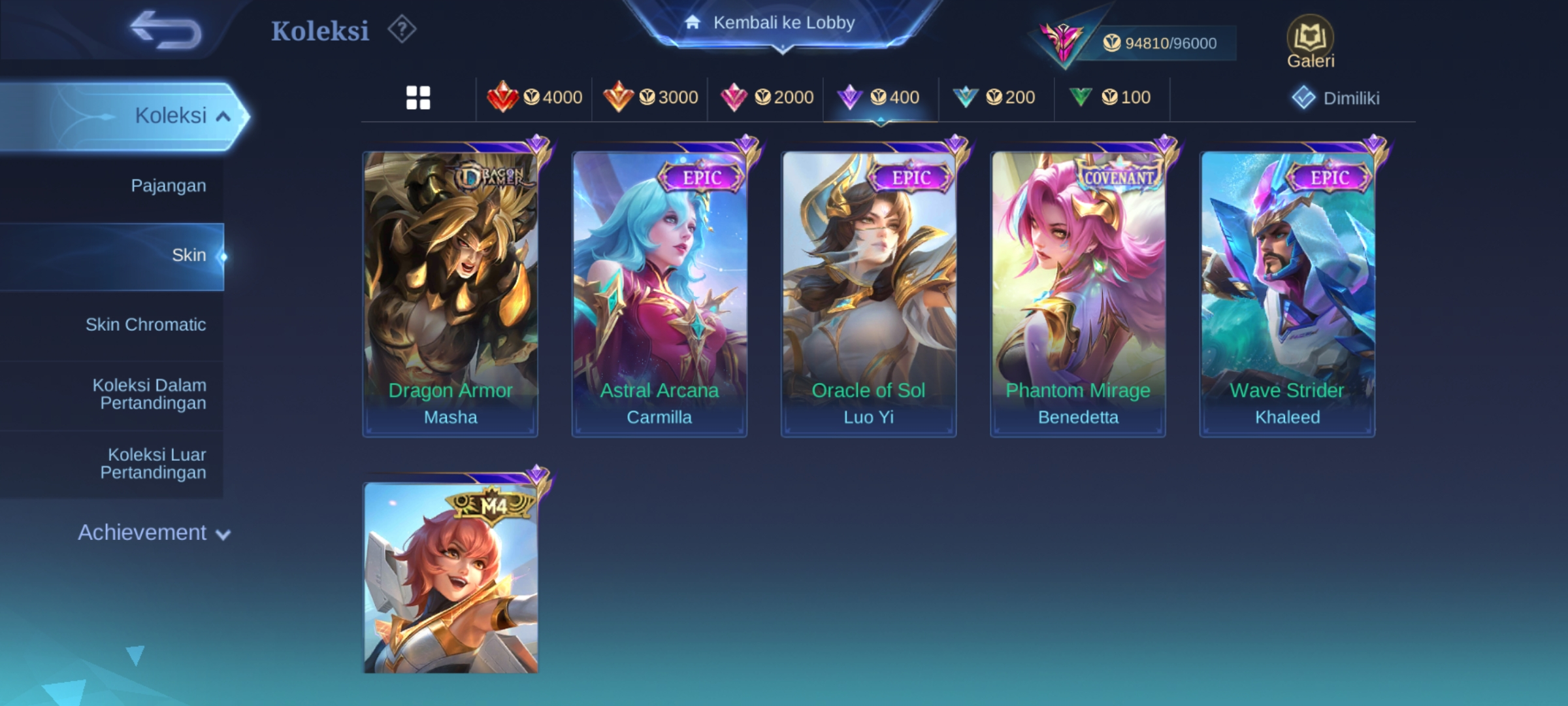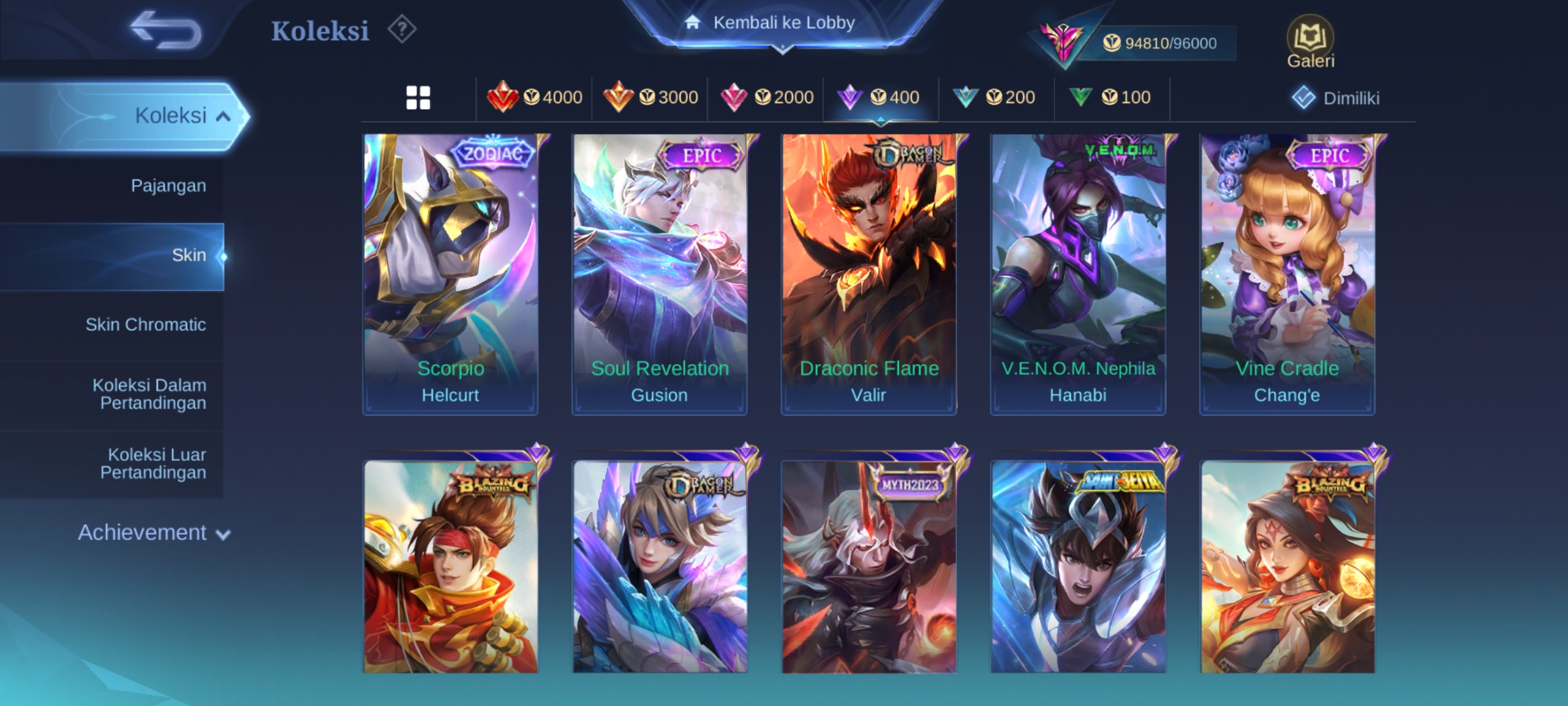 ![ML-279 Skins 316 [ Legend Freya ] KOF Valir x Karina / Collector Pharsa x Natalia / Sanrio Floryn / Champions Brody / Anual Haya](https://cdn.gameboost.com/games/mobile-legends/tiers/sm/grandmaster.webp)