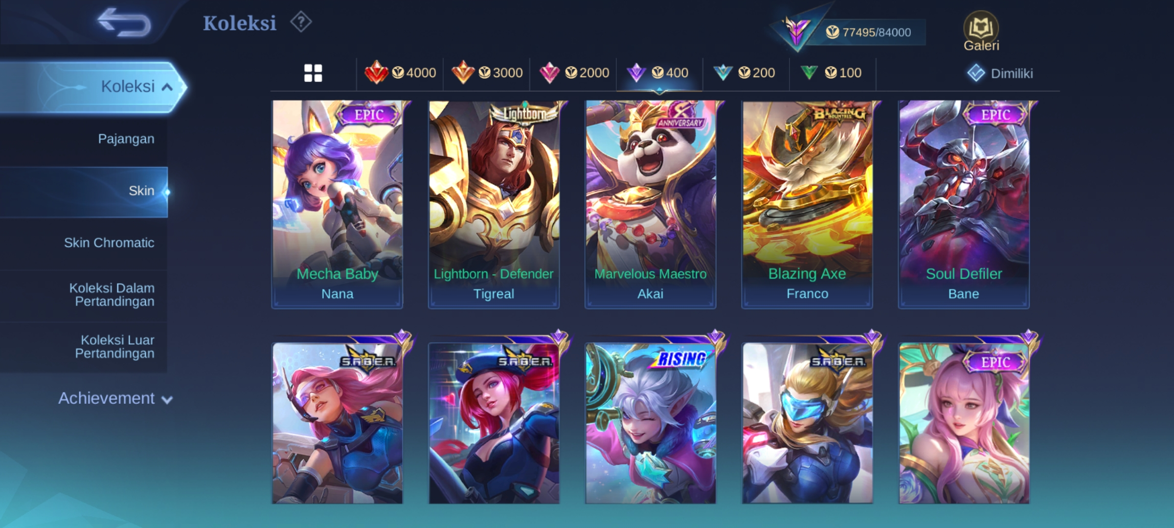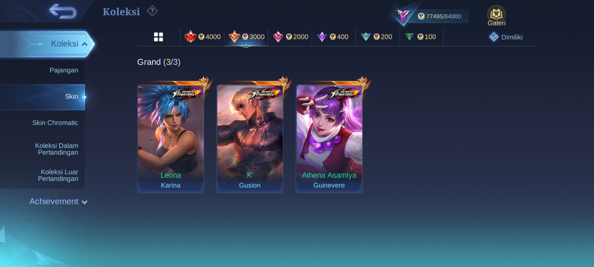 ML-407 Skins 329 [ Legend Valir ] KOF Gusion x KOF Guinevere / Luckybox Saber x Luckybox Guinevere / Anual Lesley / M4 Beatrix