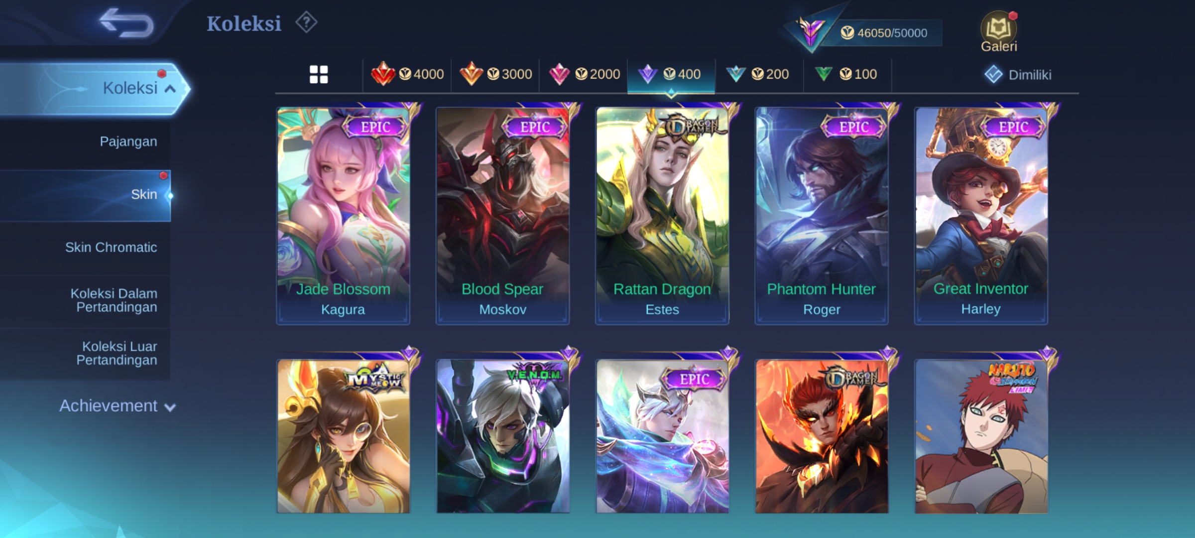 ![ML-424 Skins 184 [ Legend Lunox ] Aspirants Lesley / HxH Julian Kurapika / Sasuke Suyou / Collector Silvana / M6 Claude](https://cdn.gameboost.com/games/mobile-legends/tiers/sm/legend.webp)