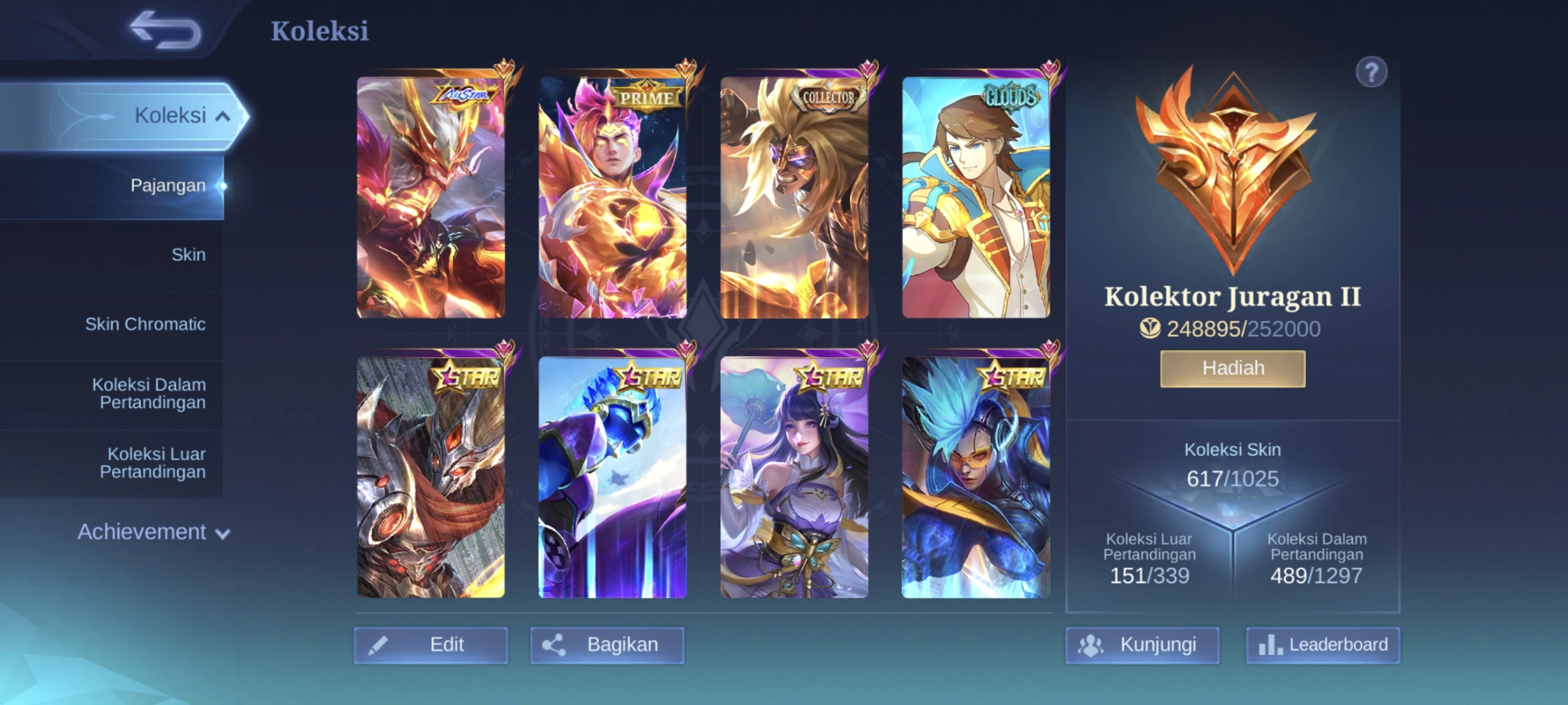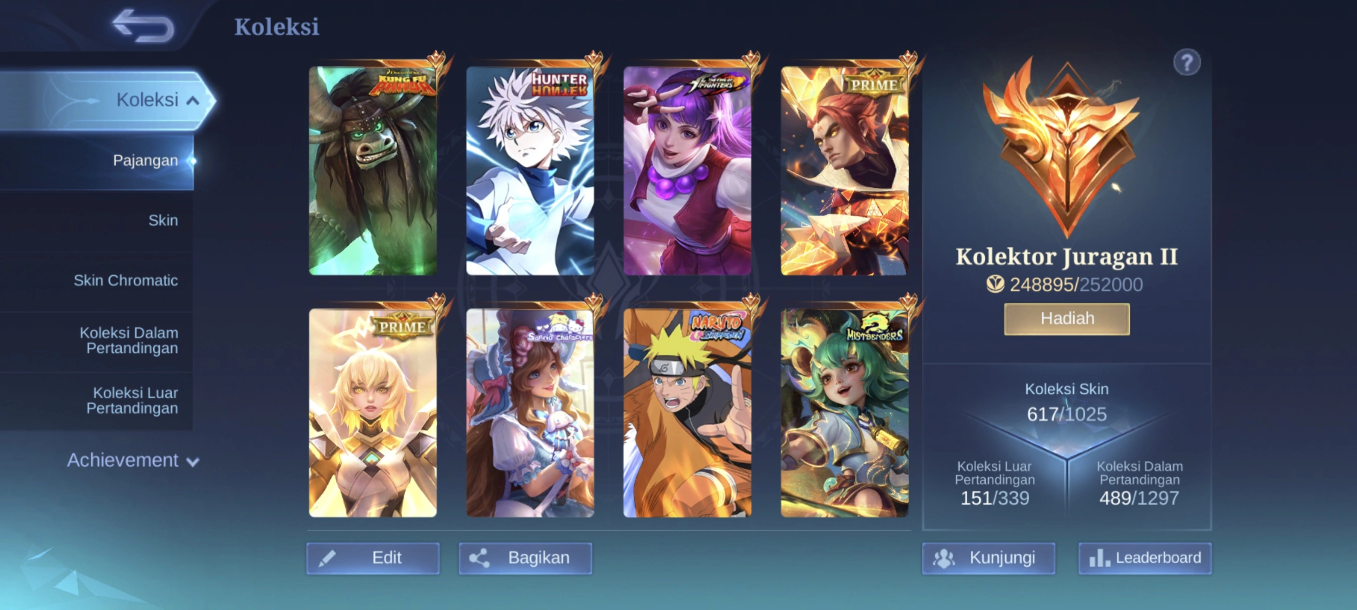 MM301|Lv108|617Skin|MEGACOLLECTORII|2LEGEND|2MISTBENDERS|2KUNGFUPANDA|Harith Killua|11.11 Hayabusa|2ALLSTAR|NARUTO|AOT Martis Levi|STARWARS Argus|7COLLECTOR