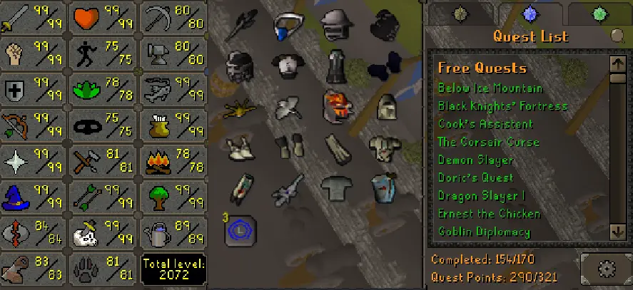 Max Combat Main | 2070+ Total | 290+ QP | 99 Slayer | 84 Runecrafting | Avernic | Elite Void | Skilling Outfits ⸱ CG143198