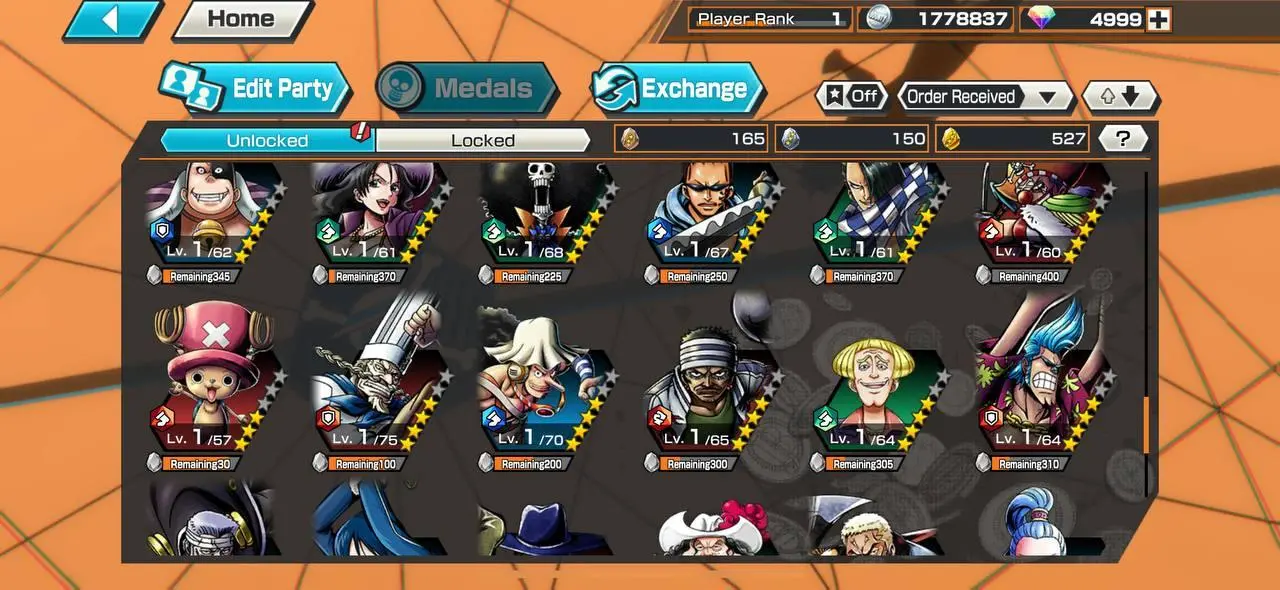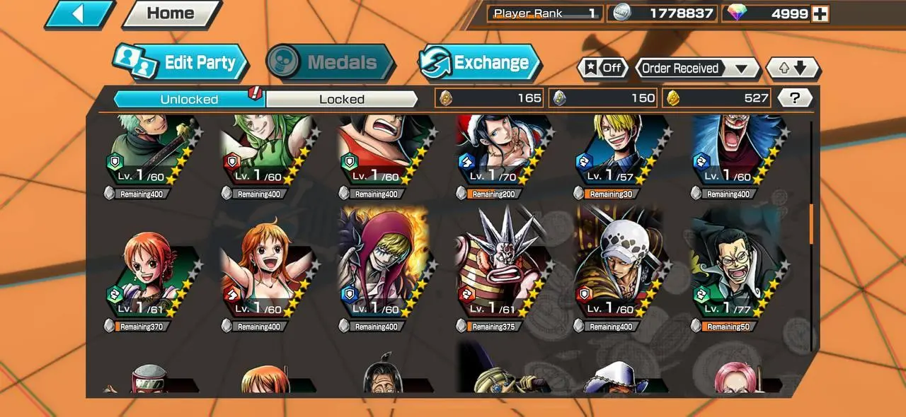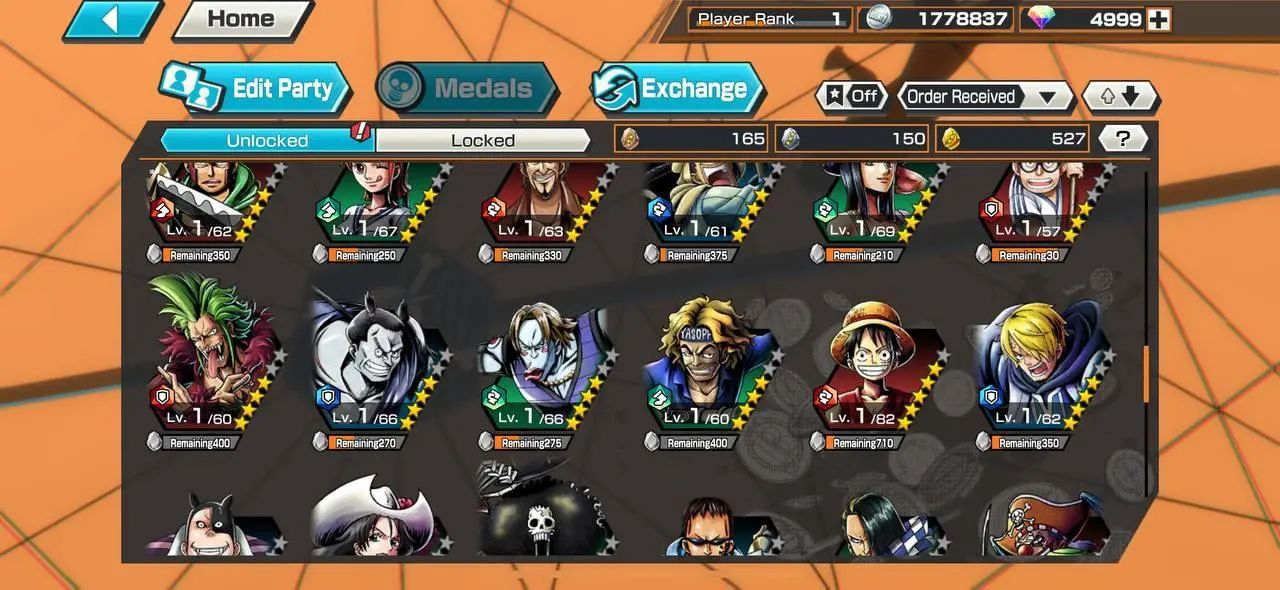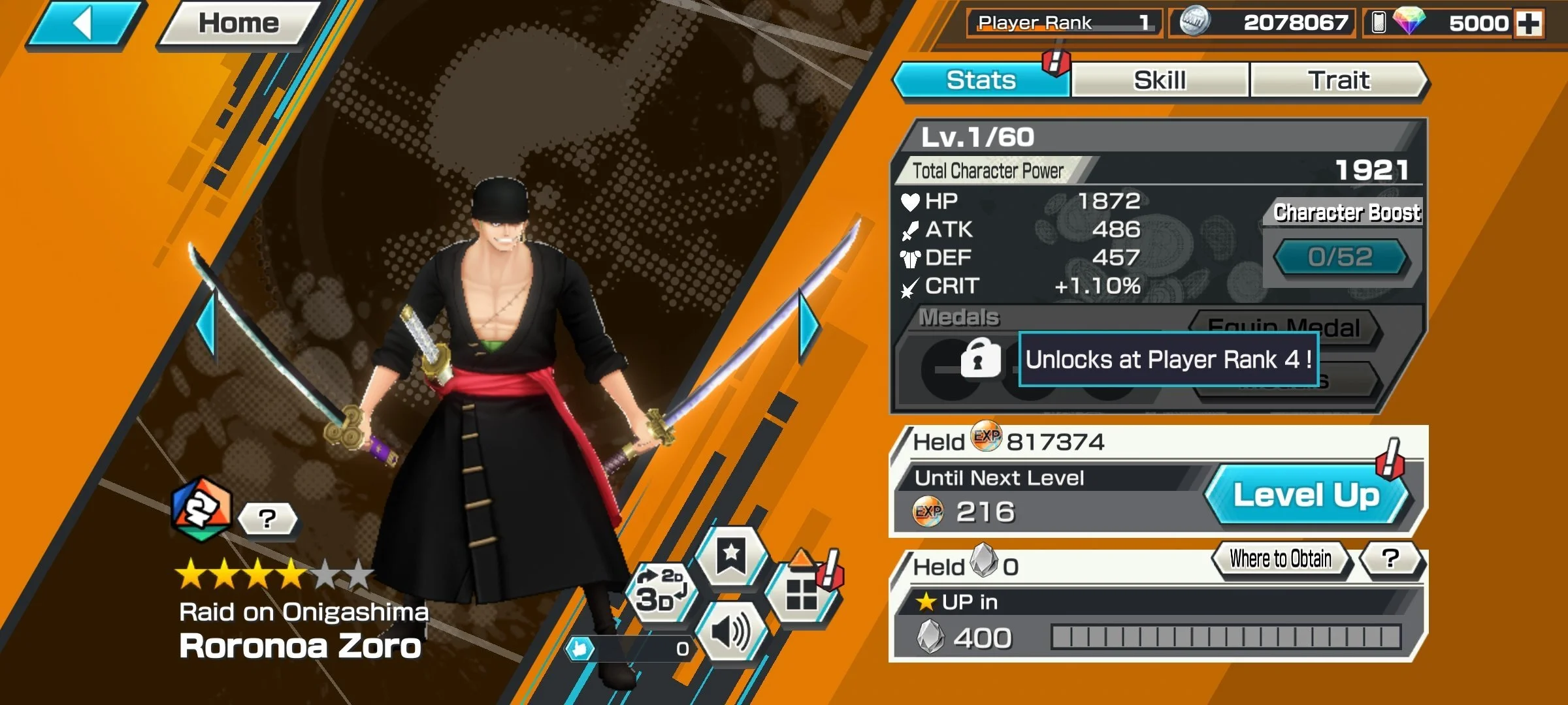 IOS 💙 5000 Diamonds + Onigashima Roronoa Zoro 💛 1300 Gold fragments 💛 Characters 4 stars