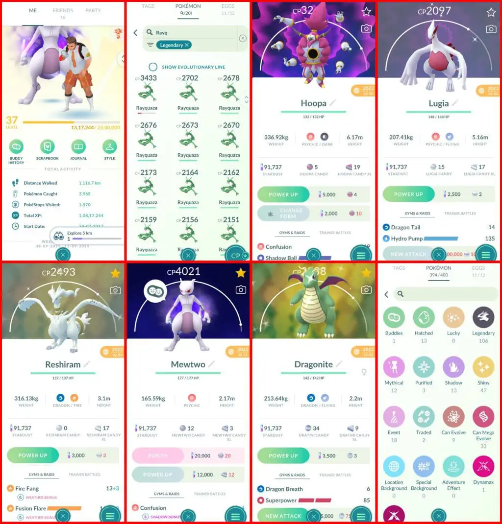 LEVEL 37(INSTINCT)🔥394/400 Pokemon🔥106 Legendary🔥47 Shiny🔥Legendary Mewtwo🔥Shiny Dragonite🔥Shiny Reshiram🔥Shiny Lugia🔥Instant Delivery