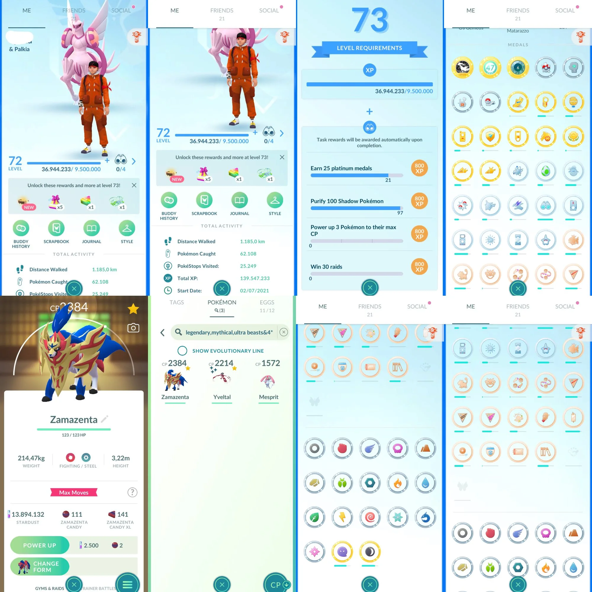 Old 2021-Level 72+ ⸱ 3 legend iv100-Shundo Yveltal+Hundo Zamazenta Sword-210 legend-204 shiny-13.8 mil+ Stardust-109 Hundo-11 costume-725 Coins-Shiny Dialga O RoT