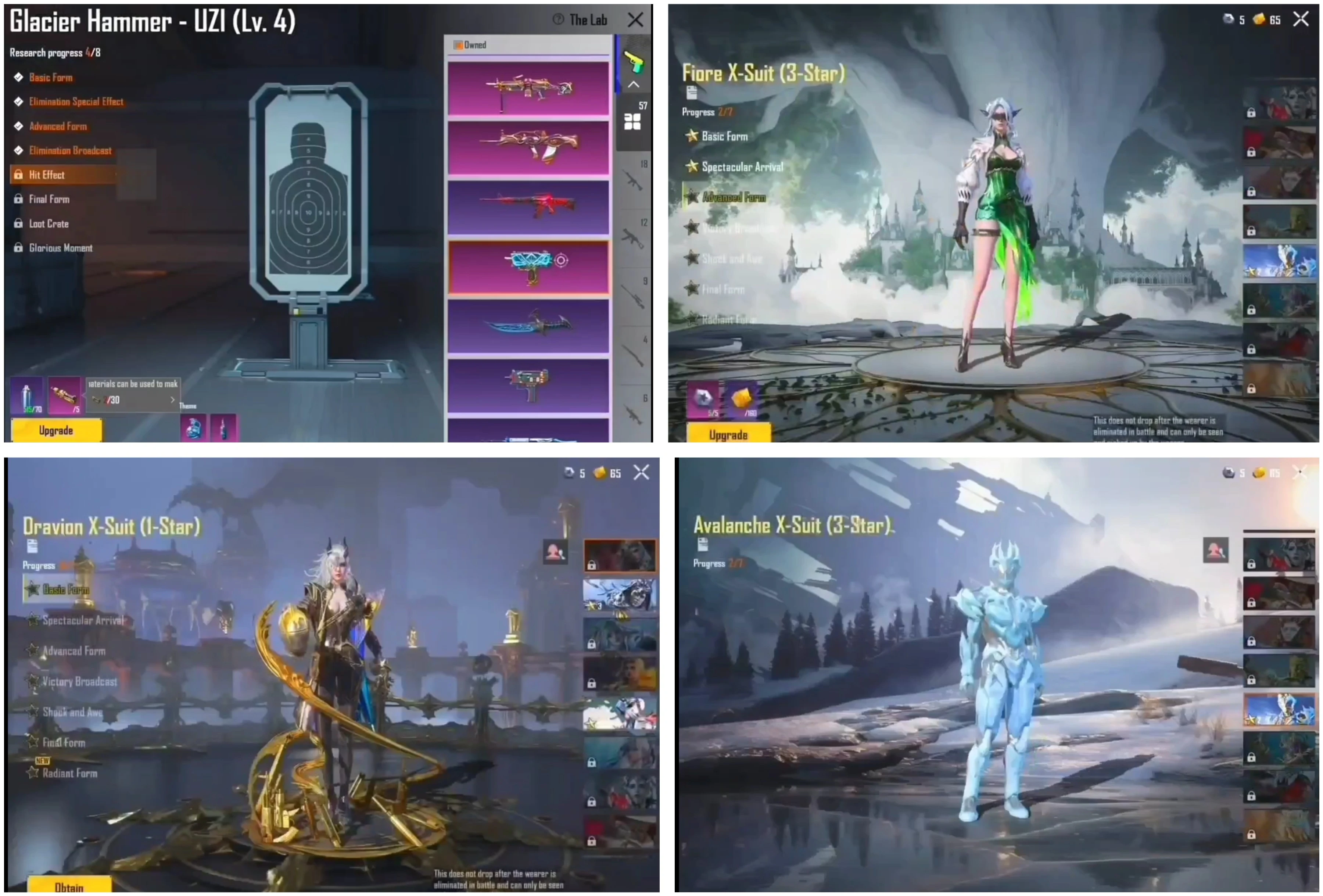 LEVEL 85 ⸱ ANUKHRA X-SUIT (3-STAR) • FIORE X-SUIT (2-STAR) • AVALANCHE X-SUIT (2-STAR) • 2x SPORTS CAR • HEAVY GUNLAB • M416 GLACIER LOOT