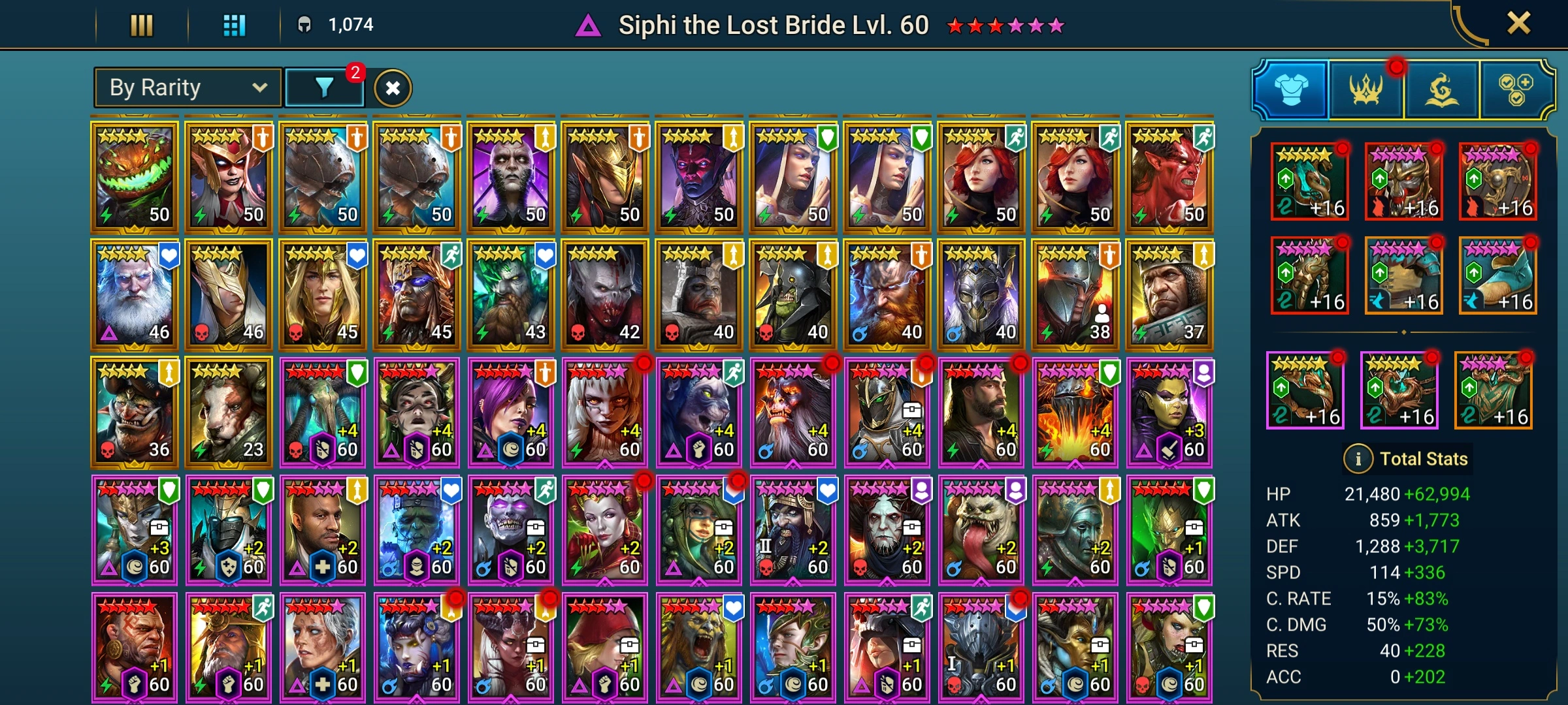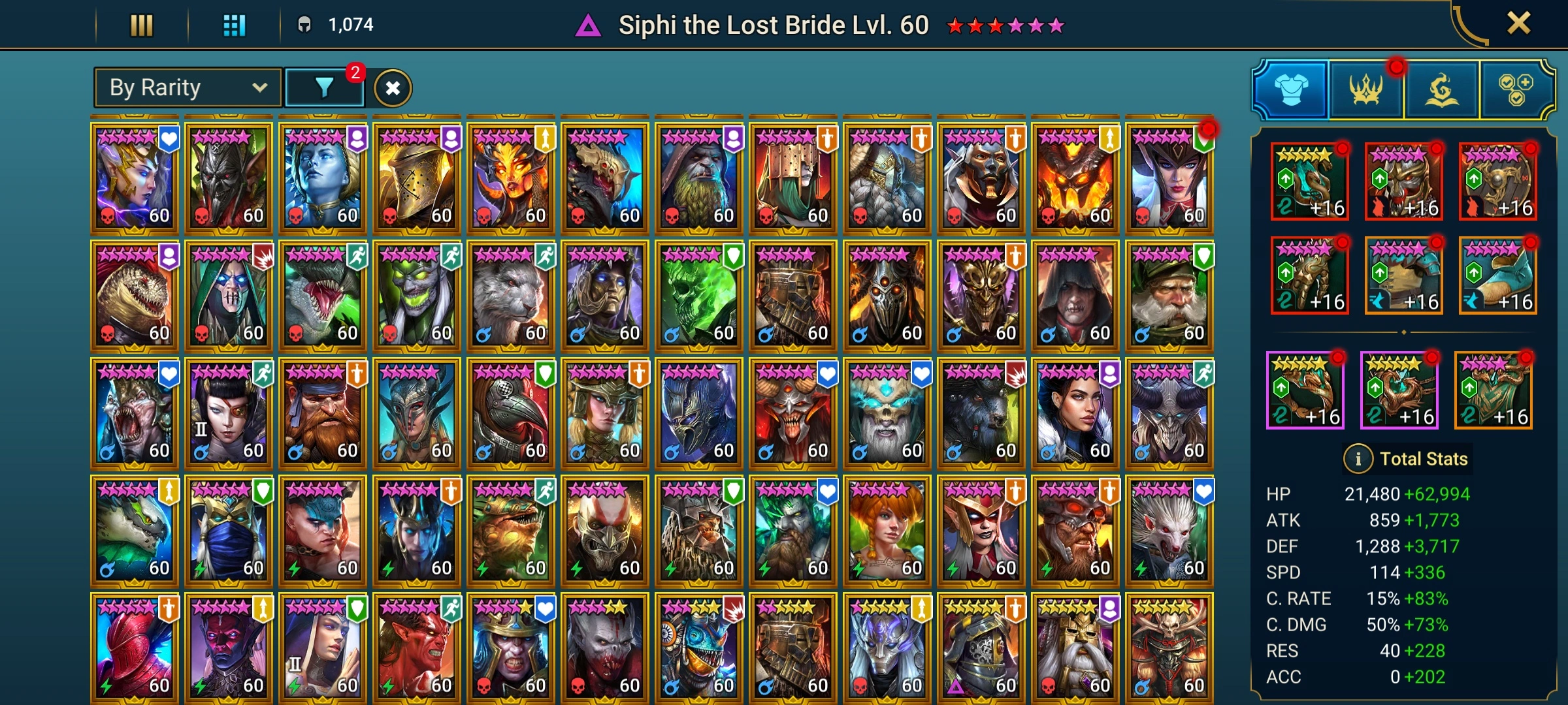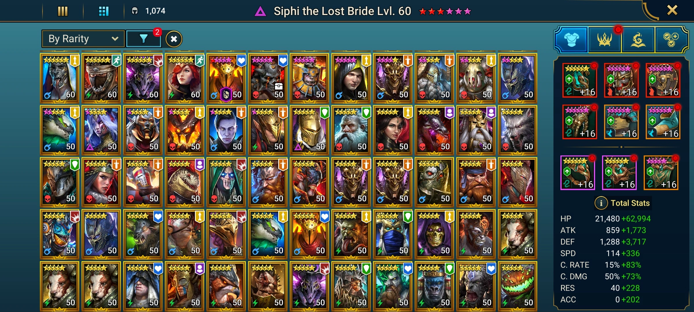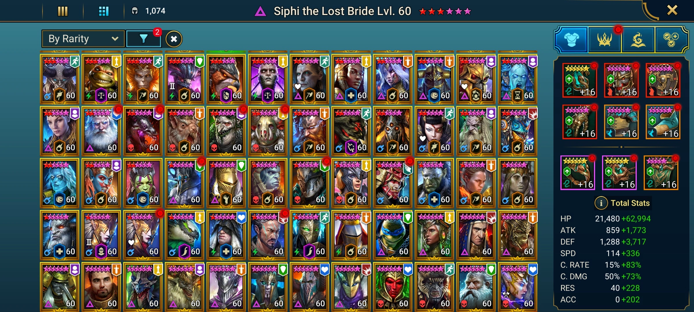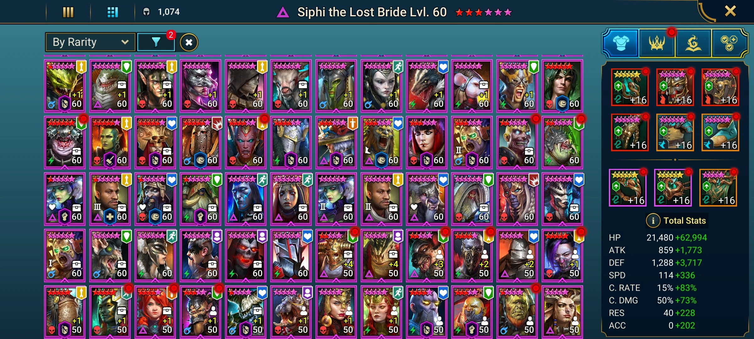 16 Mythical Champions + 265 LEGENDARY (Marius(6*),Siphi 450/x2+Rotos,Acrizia+Gnut,Leo,Odin(5*),Taras,Nekhret x2,Cardi+1,Lamasu,Arb+2,Tormin,Yncensa,SG,Armanz(6*),Harima(5*),Trunda+1(5*)/x2,Thor x3,Wixwell x2...) + 1k UNM + 1k NM HYDRA + 1k NM Chimera