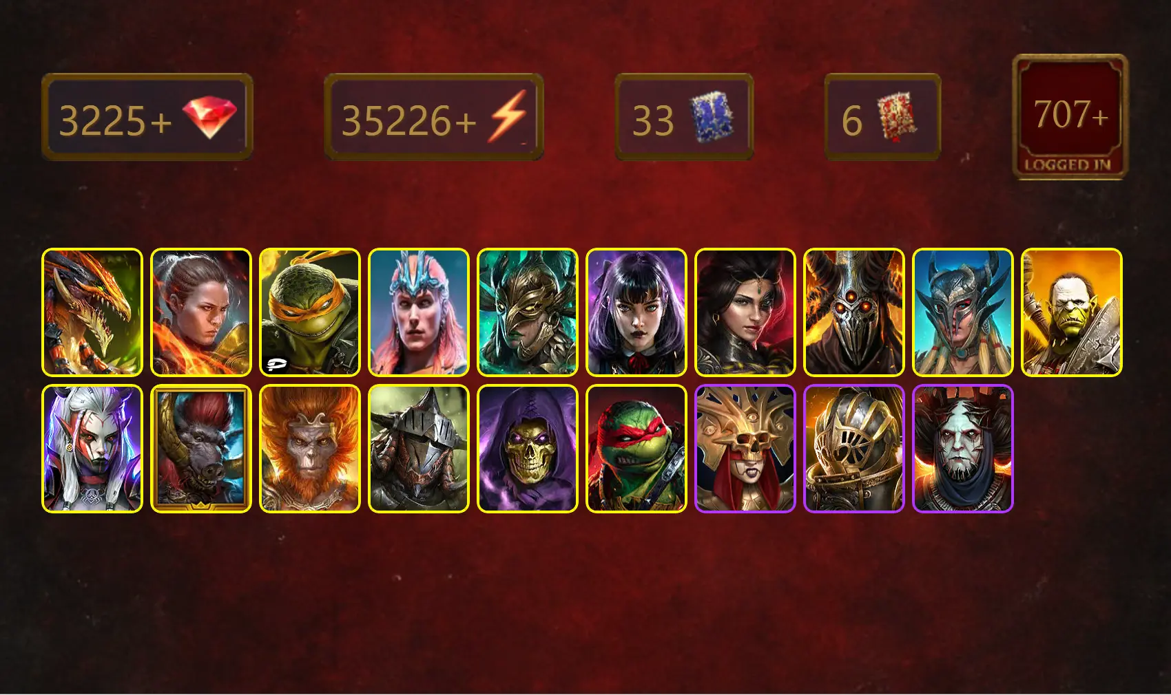 [STARTER]Chaagur+Hephraak+Ronda+Michelangelo+Loki+Leminisi the Gold-Wing+Alice+Adelyn+Scyl+Artak+Visix+Ukko+Wukong+31Epics