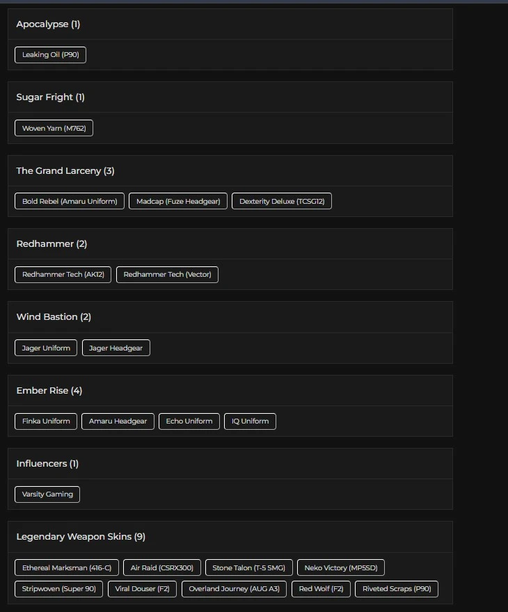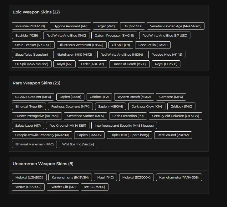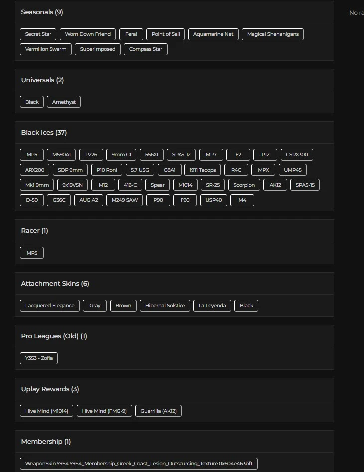 75 LVL ⸱ 37X BLACK ICES ⸱ 9X SEASONALS ⸱ 2X UNIVERSALS ⸱ 2X ELITES ⸱ 69 OPERATORS ⸱ 3K RENOWN ⸱ FA