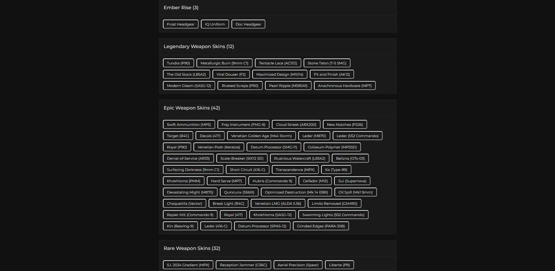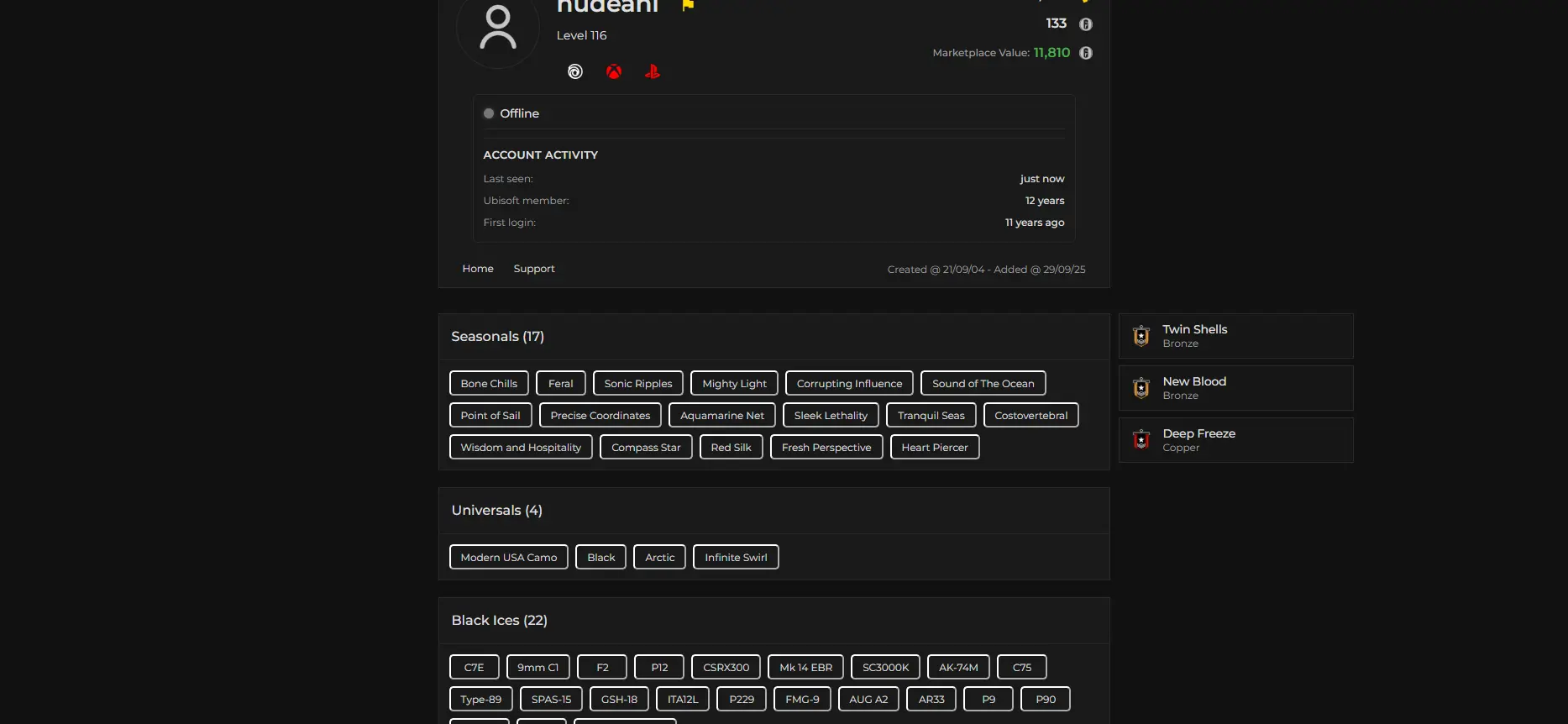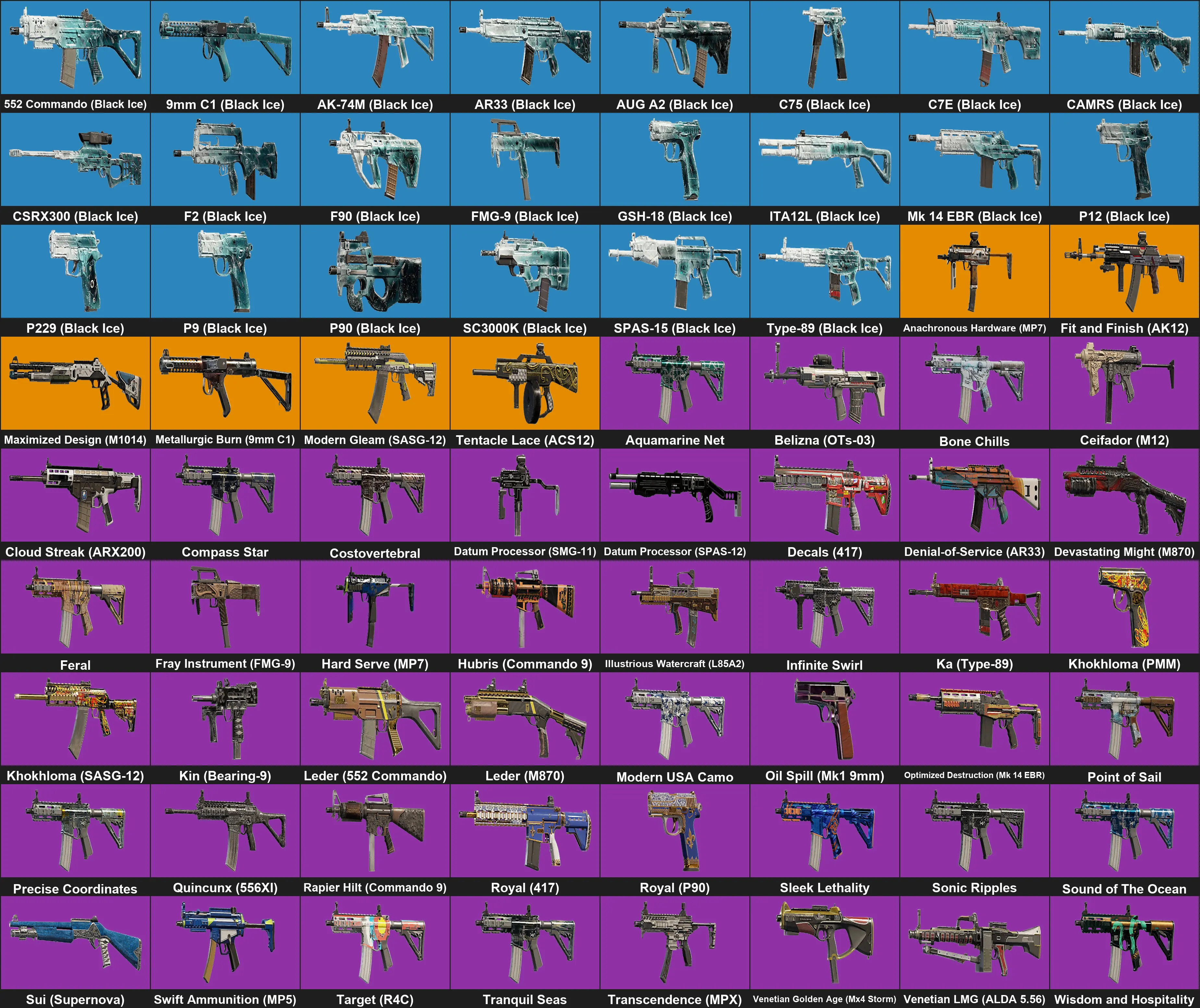 【PC】 🎨 128 Skins 🧊 22 Black Ice 🌸 13 Seasonals 🏆 3 ProLeague 🌍 4 Universals 📈 116 LVL
