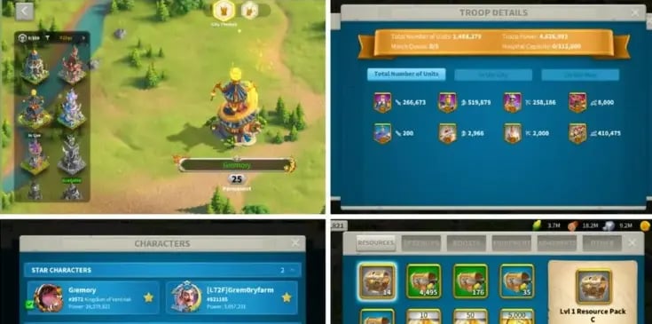 Våre RoK-kontoer er utstyrt med et imponerende utvalg av fordeler. Du vil finne riker med sterke tropper, avansert teknologi og sjeldne kommandører allerede låst opp. Mange kontoer kan skilte med høye ressurslager og VIP-nivåer, noe som gir deg økonomisk makt til å utvide riket ditt eller trene eliteenheter. Med utviklede allianser og strategiske posisjoner, får du tilgang til endgame-innhold og eksklusive arrangementer fra første dag.