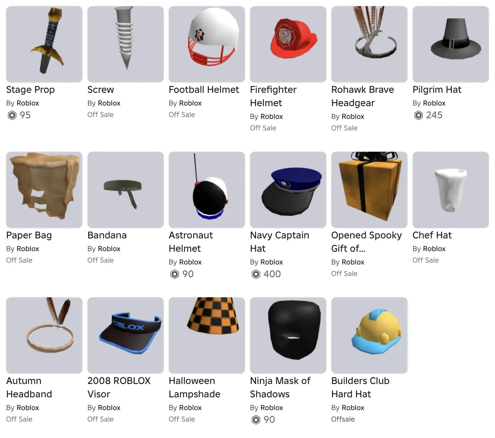 ROBLOX 2008 Account 🔥53+ Offsales & Limiteds 🔥 Brinsop + White Cowboy Hat + Knight Helmet + Circle Ears + Paper Bag + Firefighter Helmet + Halloween Lampshade + Hammerhead + Elf Hat + Bucket Hat | 5K+ Robux SPENT | Email Access ✅