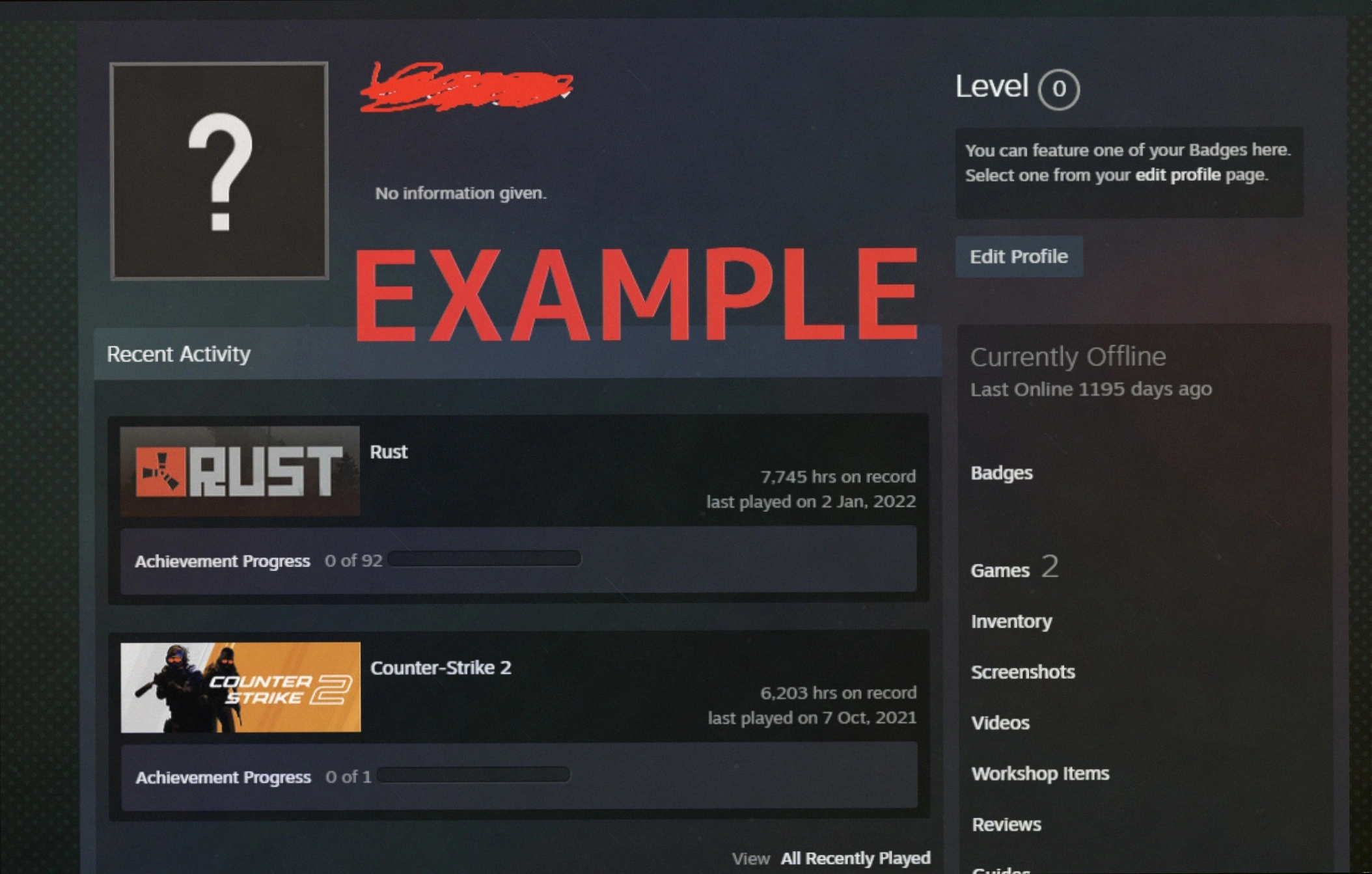 "7000+ Idle HOURS RUST+CS2 (NOT Prime) ⸱ 6000+ Idle Hours+Full Access+Original Email+Instant Delivery 24/7