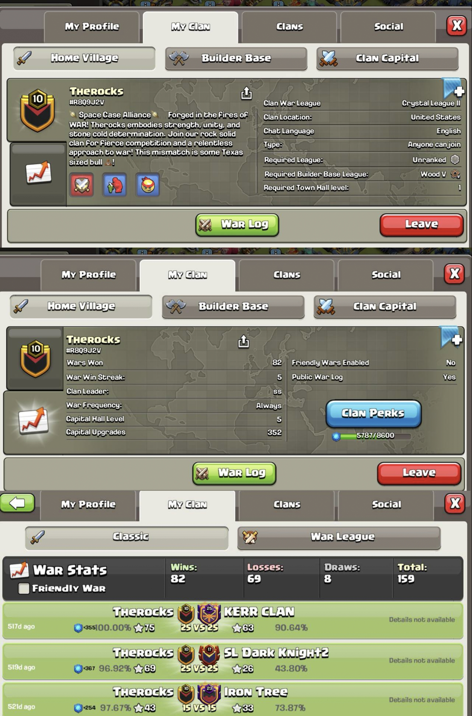 ✨thug life coc✨lvl 12✨pure English name✨green positive warlog✨Crystal leauge clan ✨259 wins 196 loses✨