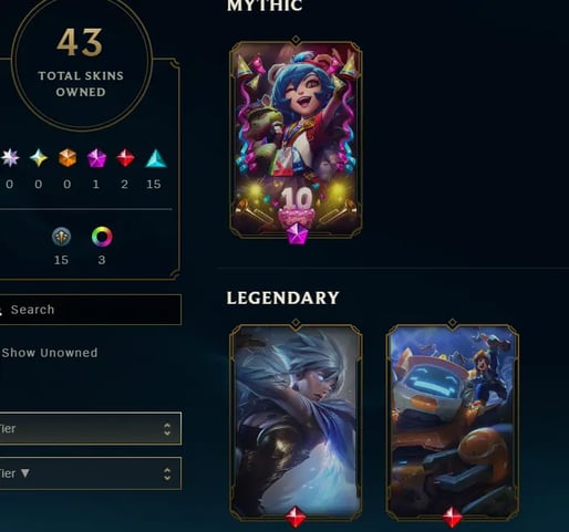 Server【TR】LEVEL 203 Season 16 (H-Leveled 2017)43 Skins 8933 BE 145 RP 95 Champ | Full Access | Instant Deliver Unranked