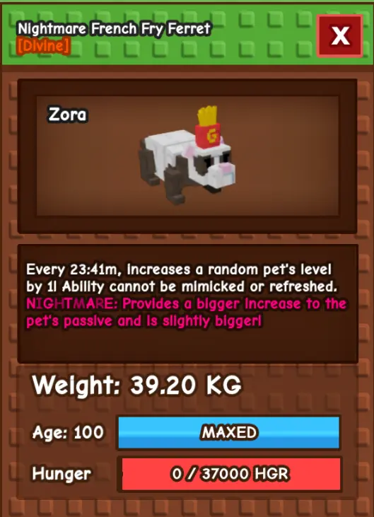😈 NIGHTMARE 😈 FRENCH FRY FERRET 39KG 100 AGE HUGE