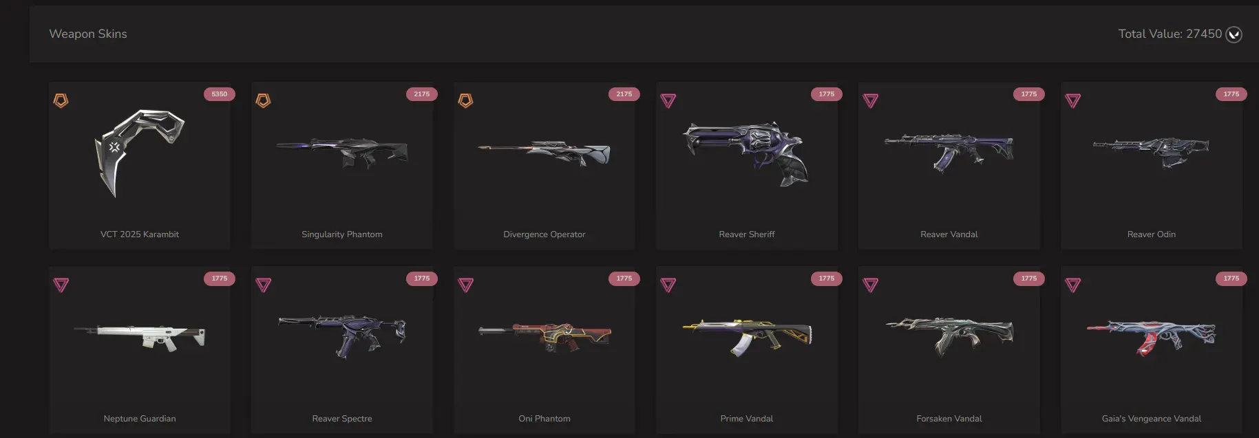 10% OFF【 EU ⸱ Turkey 】🗡️ VCT 2025 Karambit🔫 Reaver Sheriff💰 30450 VP Spent🏆 Ascendant 3📩 Full access with first mail