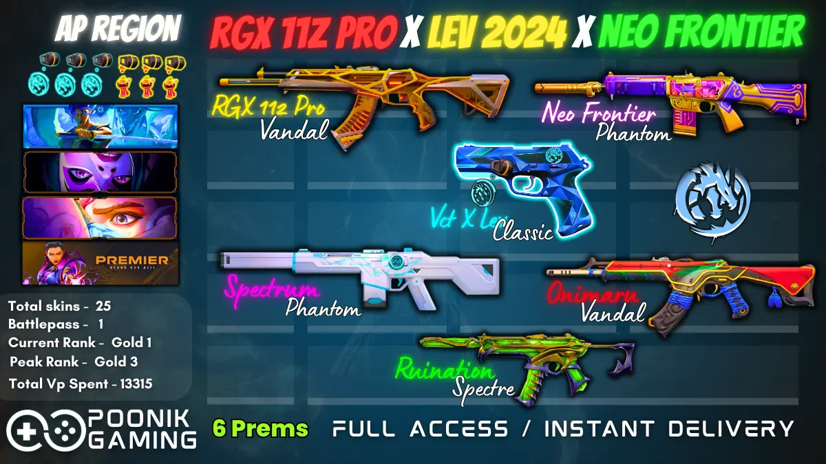 25 SKINS ⸱ AP REGION | SPECTRUM PHANTOM, VCT x LEV CLASSIC, RUINATION, RGX ⸱ 100+ BUDDIES! [V556]